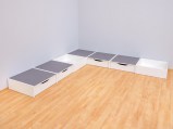 | Speelplatform/ Parcoursset Ferdinand met stuk voor een ballenbak/blokken enz inclusief extra opslagruimte Individueel en zelf ontworpen Een podiumlandschap voor de kinderopvang, dat altijd nieuw en anders ingevuld kan worden. De platform Ferdinand met het tijdloze witte decor is een echte troef met veel afwisseling. Veelzijdig en altijd nieuw Doeken, ballen of zelfs blokken, bouwmaterialen kunnen in de twee voetstukvierkanten worden gevuld. Zo creëer je een ballenbad met altijd nieuwe inhoud in een oogwenk. Alle zintuigen van de kinderen zijn aangesproken. Overigens kan het begrip van kleuren en vorm vrij speels worden bevorderd. Voor het bewaren van de inhoud van de ballenbaden zijn sokkels met rolboxen in de set inbegrepen. Hier zijn natuurlijk alle andere speelgoed zoals boeken, bouwstenen en kleine voertuigen hun plaats. Geniet van de voordelen van linoleum van hoge kwaliteit De podia zijn uitgerust met linoleumvloeren van hoge kwaliteit. Deze antibacteriële en geluidsarme coating is wonderbaarlijk eenvoudig te reinigen en te desinfecteren. Hij is ook antistatisch. Met deze eigenschappen is het ideaal voor gebruik in kinderopvang. Combineer en complementeer De voetstukset Ferdinand hoeft niet te worden vastgeschroefd of vastgeklemd en kan worden opgesteld op basis van uw kameromstandigheden. De antislip-randen zorgen voor veiligheid en stabiliteit van alle elementen. De set is alleen beschikbaar in de gecoördineerde, afgebeelde kleuren. Natuurlijk kan de sokkel op elk moment worden uitgebreid met sokkels uit ons diverse assortiment. belangrijk: De voetstukelementen zijn exclusief ontwikkeld voor gebruik door baby- en kleuterkinderen (0-6 jaar). Daarom is het maximale laadvermogen 120 kg per element. De vloer van de rolboxen van de ladeblokken mag een maximale belasting van 60 kg niet overschrijden. levering 1x voetstuk - vierkant, decor wit, 24 cm, linoleum grijs, (hxbxd) 24x75x75 cm 2x voetstuk - vierkant om te vullen, decor wit, 24 cm, (hxbxd) 24x75x75 cm 4x sokkel met rolkist, witte decor, 24 cm, linoleum grijs, (hxbxd) 24x75x75 cm. te gebruiken: Aanbevolen leeftijd: 0-6 jaar textuur: Materiaal: Hout Afmetingen / gewicht: Gewicht incl. Verpakking: 172 kg |