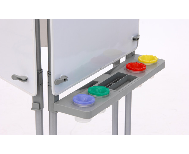 | schilders ezel 3 zijdig Hier ontstaan ​​kunstwerken hoogte verstelbaar met verfbekers inclusief montage-instructies In hoogte verstelbare schildermuur voor uw faciliteit Wie wordt de nieuwe Picasso? Drie tot zes kinderen kunnen tegelijkertijd hun ideeën op papier zetten op de 116 cm hoge schilderijmuur. Ze kunnen ideeën uitwisselen en van elkaar leren. Elk kind werkt op zijn eigen schilderijoppervlak van 60,5x60,5 cm, dat is voorzien van vier verfpotten en een penseelsteun . Dit is afneembaar en kan in de vaatwasser worden gereinigd. De hoogte van elk schilderijoppervlak kan individueel worden aangepast aan de grootte van elk kind . Gebruik de verfmuur met de volgende eigenschappen: - Verfmuren zijn magnetischen kan worden geverfd met whiteboardmarkeringen en weer worden afgeveegd - elke verfmuur heeft twee clips om op papier te houden. - Onder elk verfoppervlak bevindt zich een verwijderbaar inzetstuk voor vier verfbekers en opbergruimte voor penselen, pennen, etc. Afmetingen (L x B x H): 58 x 8,5 x 7,5 cm - Totaal metalen frame: 116 cm hoog - Afmetingen het verfoppervlak: 60,5 x 60,5 cm - het complete verfbord is in hoogte verstelbaar - inclusief water- en veiligheidskleurbekers; vier stuks per oppervlak - eenvoudig schroefmechanisme om de hoogte aan te passen en een verlenging te maken - naar wens uit te breiden - met montage-instructies Details: - Frame: aluminium - Panelen: MDF, gecoat en rubberen randen - Kleine onderdelen: polypropyleen (PP) levering - 3-zijdige schildermuur, incl. 12 verfbekers; Afmetingen: 116 x 67 x 58 cm Gegevens & feiten te gebruiken: Leeftijd vanaf:2 jaar textuur: Primair materiaal:plasticAndere materialen:metaal Afmetingen / gewicht: diepte:58 cmbreedte:67 cmheight:116 cm Algemene info: Product kleur:Wit, zilver, metaalachtig |