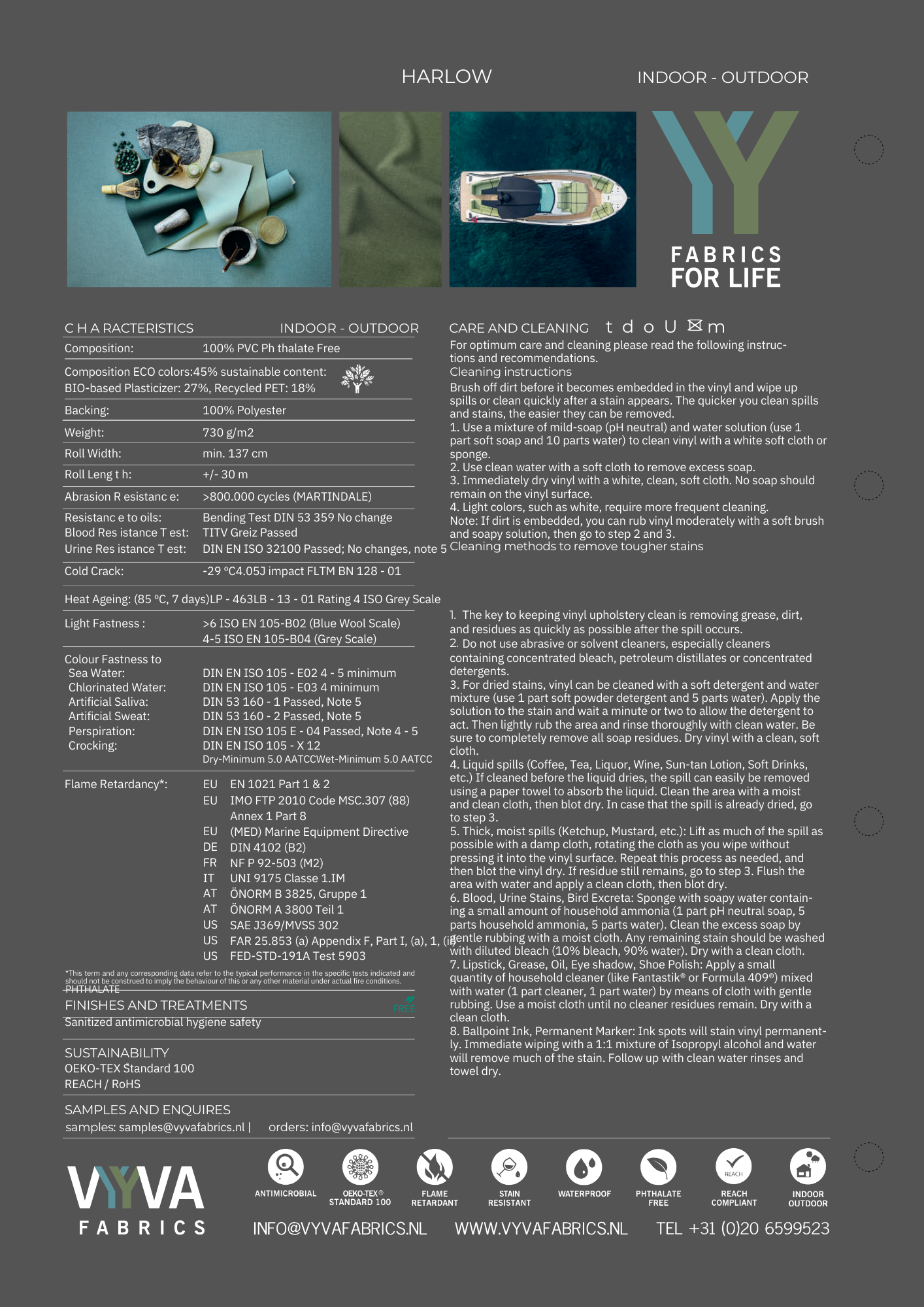 die schadelijk kunnen zijn voor mens of milieu. Het innovatieve materiaal in de collectie Harlow is dan ook geheel ftalaat-vrij.