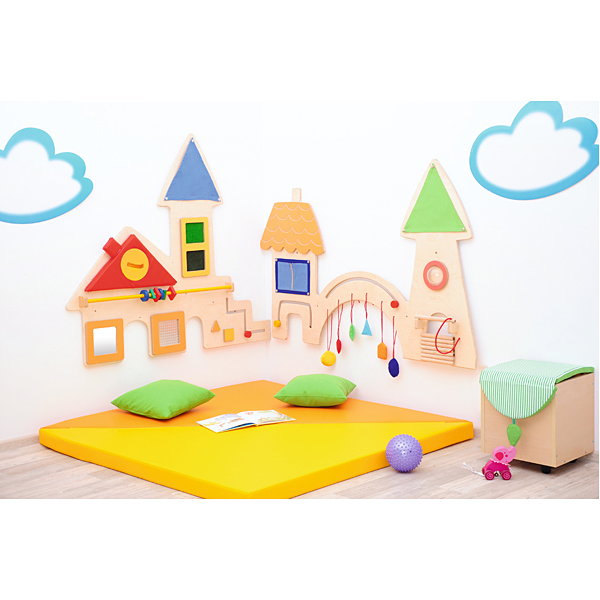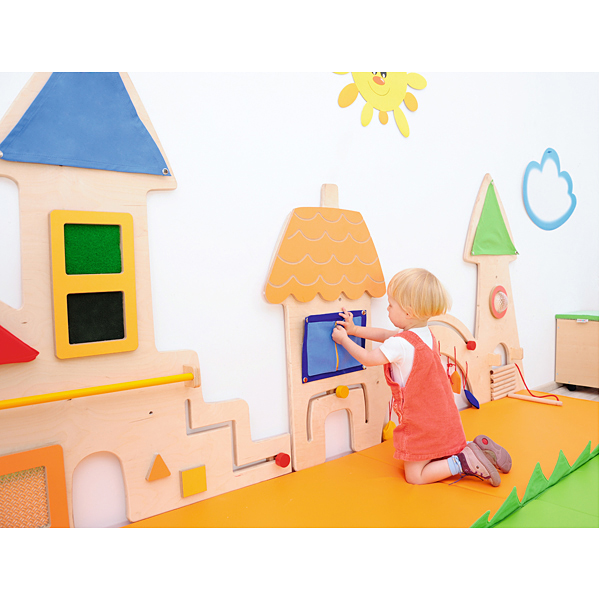 Leuke 2-delige speelwand met verschillende activiteiten.