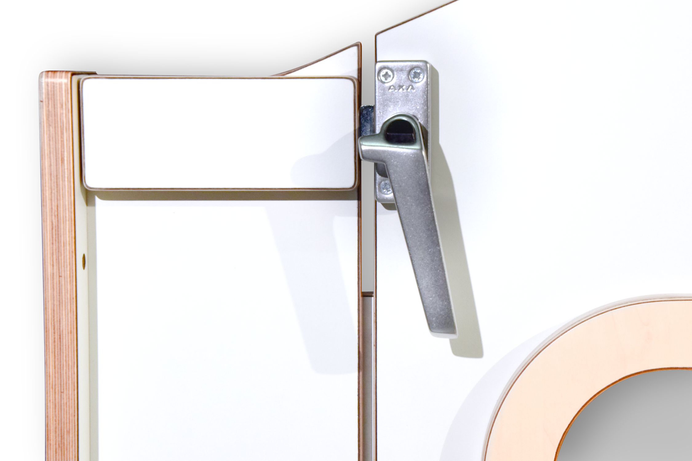 Panelen zijn opgebouwd uit berken multiplex met witte HPL toplaag of berken decor.