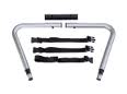 Het achterframe wordt eenvoudig in de treeplank bevestigd, door de zwarte doppen uit de buizen van de treeplank te halen.