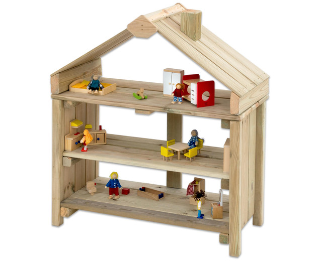 | Poppenhuis voor buiten Voor kleine en grote popliefhebbers! Robuust materiaal - ideaal voor buitenshuis genoeg ruimte op 3 niveaus bevordert fijne motoriek en verbeeldingskracht In de frisse lucht spelen Het poppenhuis in de buitenlucht heeft veel ruimte voor verbeelding en rollenspel op zijn 3 niveaus. Het is speelbaar vanaf de voor- en achterkant en biedt veel mogelijkheden voor uw kinderen. Het poppenhuis is stevig en daarom perfect geschikt voor uw buitenruimte. Op deze manier kunnen kinderen hun creativiteit de vrije loop laten in de frisse lucht. Bij het omgaan met de kleine poppenhuisbewoners worden de fijne motorische vaardigheden extra getraind. Alle gegevens in één oogopslag: - om in de frisse lucht te spelen - Ruimte voor meerdere kinderen - speelbaar vanaf twee kanten Let op: Exclusief poppetjes en meubilair, deze kunt u hier vinden. afmetingen: - Totale afmetingen: (H x B x D) 90 x 85 x 37 cm - middelste plank: (B x D) ca. 70,5 x 30,5 cm - Hoogte van het dak naar de eerste verdieping: ca. 32,5 cm - Hoogte van de vloer tot het middelste bord: 19 cm - Hoogte middelste bord op het eerste bord: 22 cm Levering zonder decoratie. Voor eenvoudige zelf montage! Gegevens en feiten te gebruiken: Aanbevolen leeftijd: 2-7 jaar textuur: Materiaal: Hout Afmetingen / gewicht: Hoogte: 90 cmBreedte: 85 cmdiepte: 37 cmGewicht incl. Verpakking: 17 kg. Wanneer het poppenhuis niet gebruikt wordt kunt u dit het beste binnen of onder een afdak zetten! |
