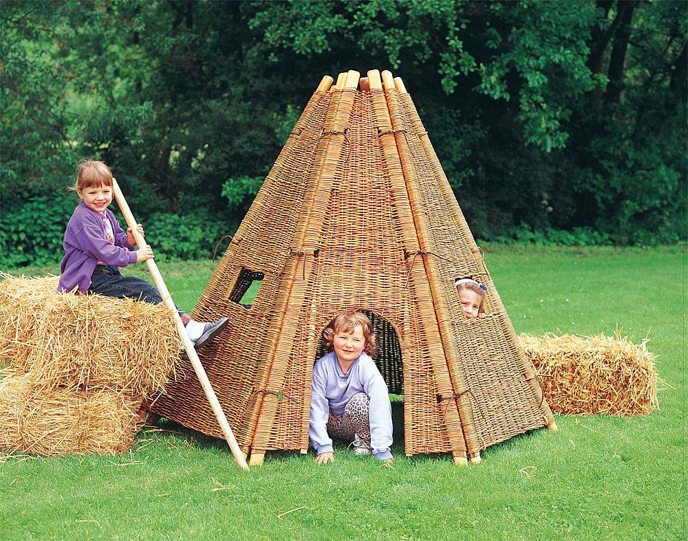 Door het luchtdoorlatende wilgen vlechtwerk ontstaat in de wilgentent ook bij sterke zon geen drukkende hitte.