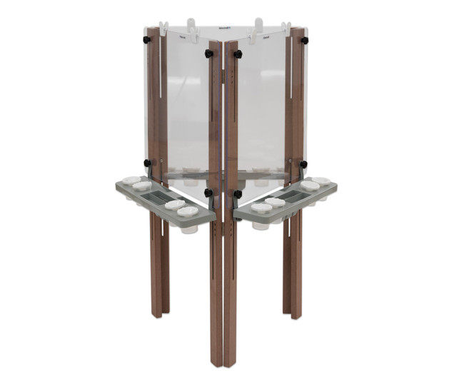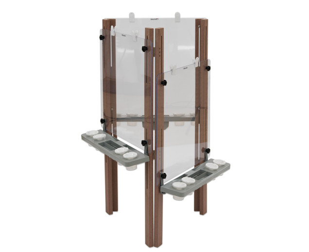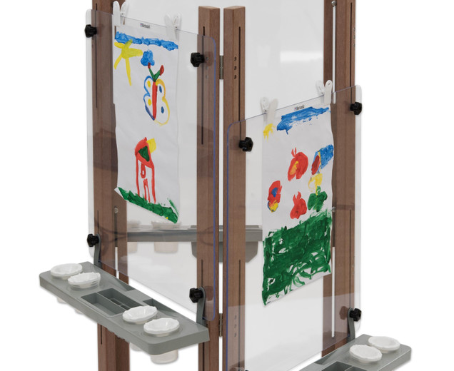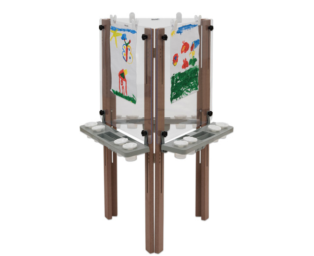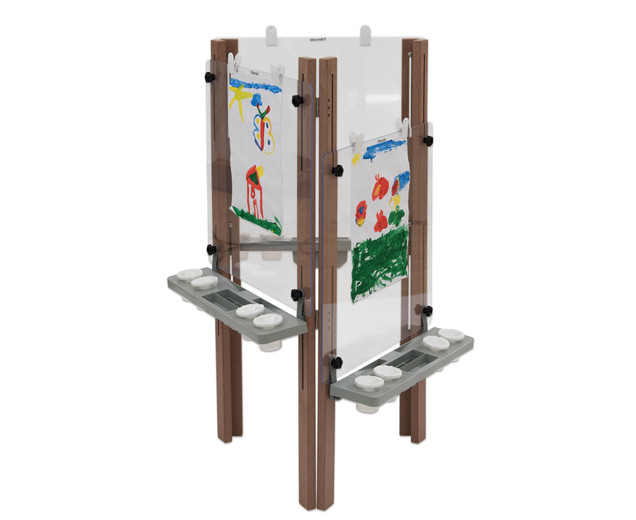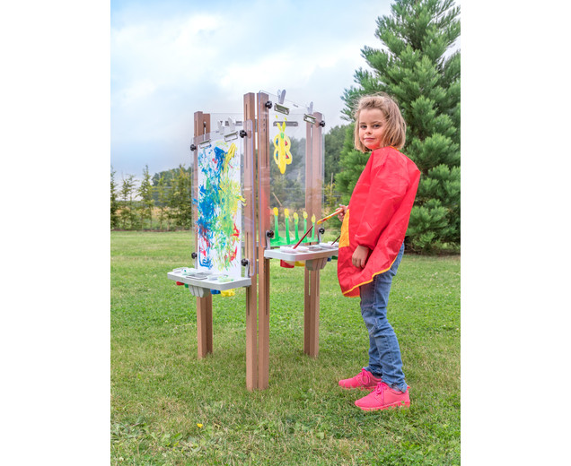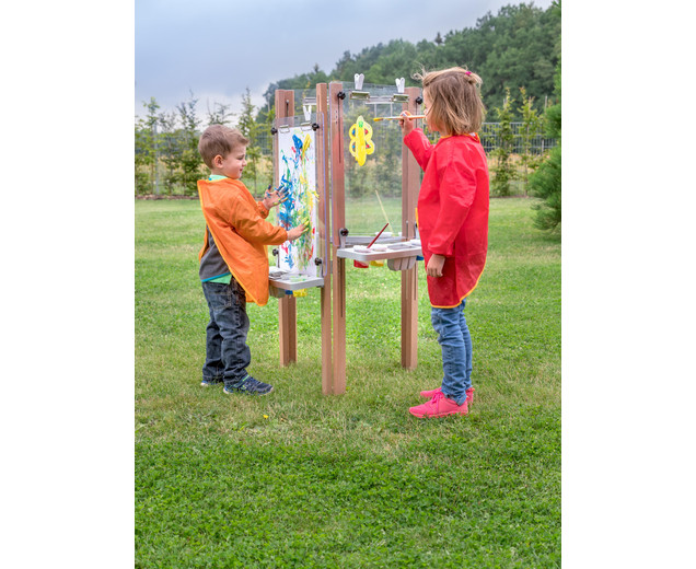 3-zijdige ezel voor buiten Het is in hoogte verstelbaar, heeft clips voor het bevestigen van papier en karton |