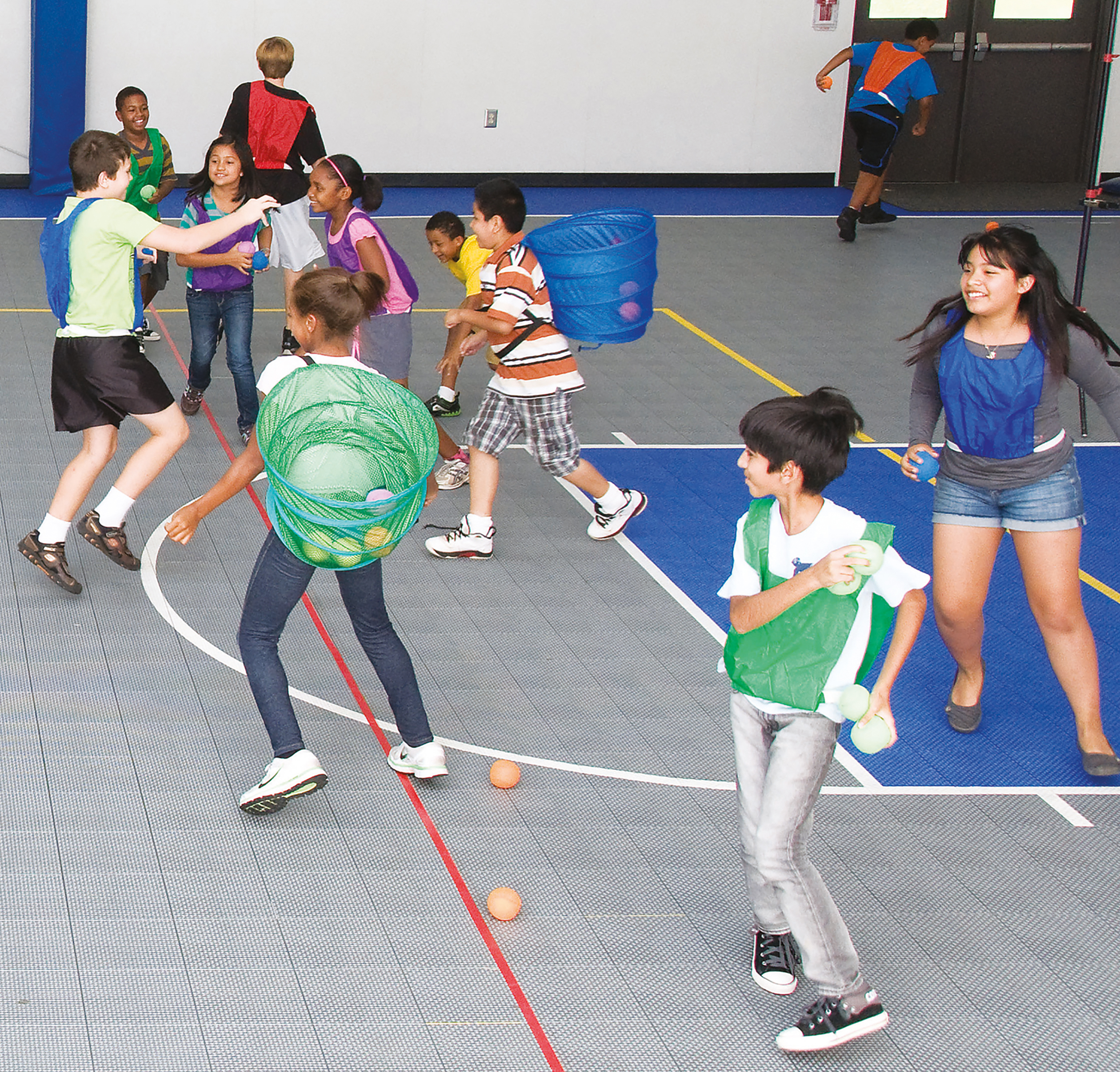 Het rugzakspel combineert gooien, aandacht en teamgeest.