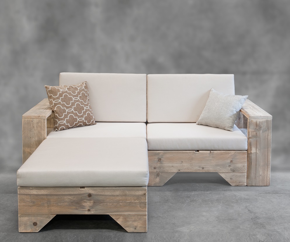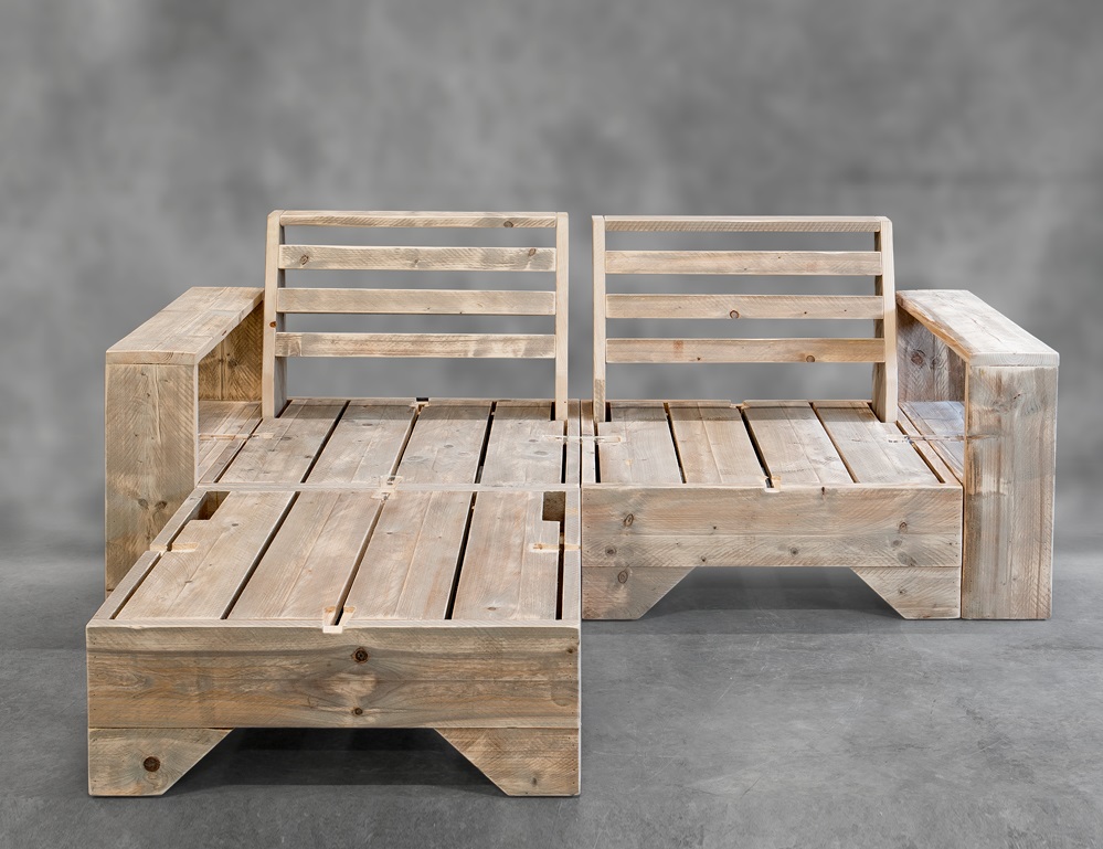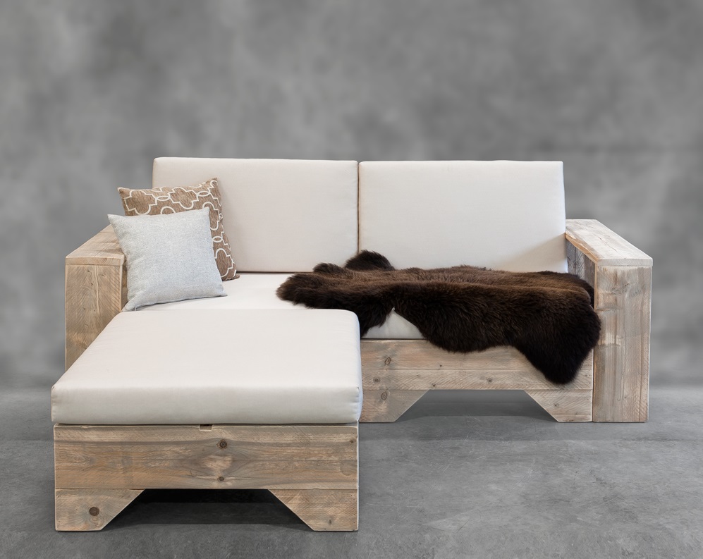 met ons eigen unieke concept de Steigerhouten Loungebank Zen 1 incl. Hocker,