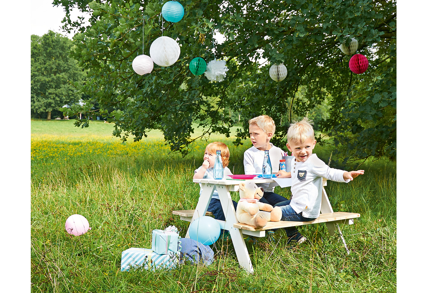 Deze picknicktafel 4Kids bied ruimte aan vier kinderen en heeft als afmetingen: 90x85x50cm.
