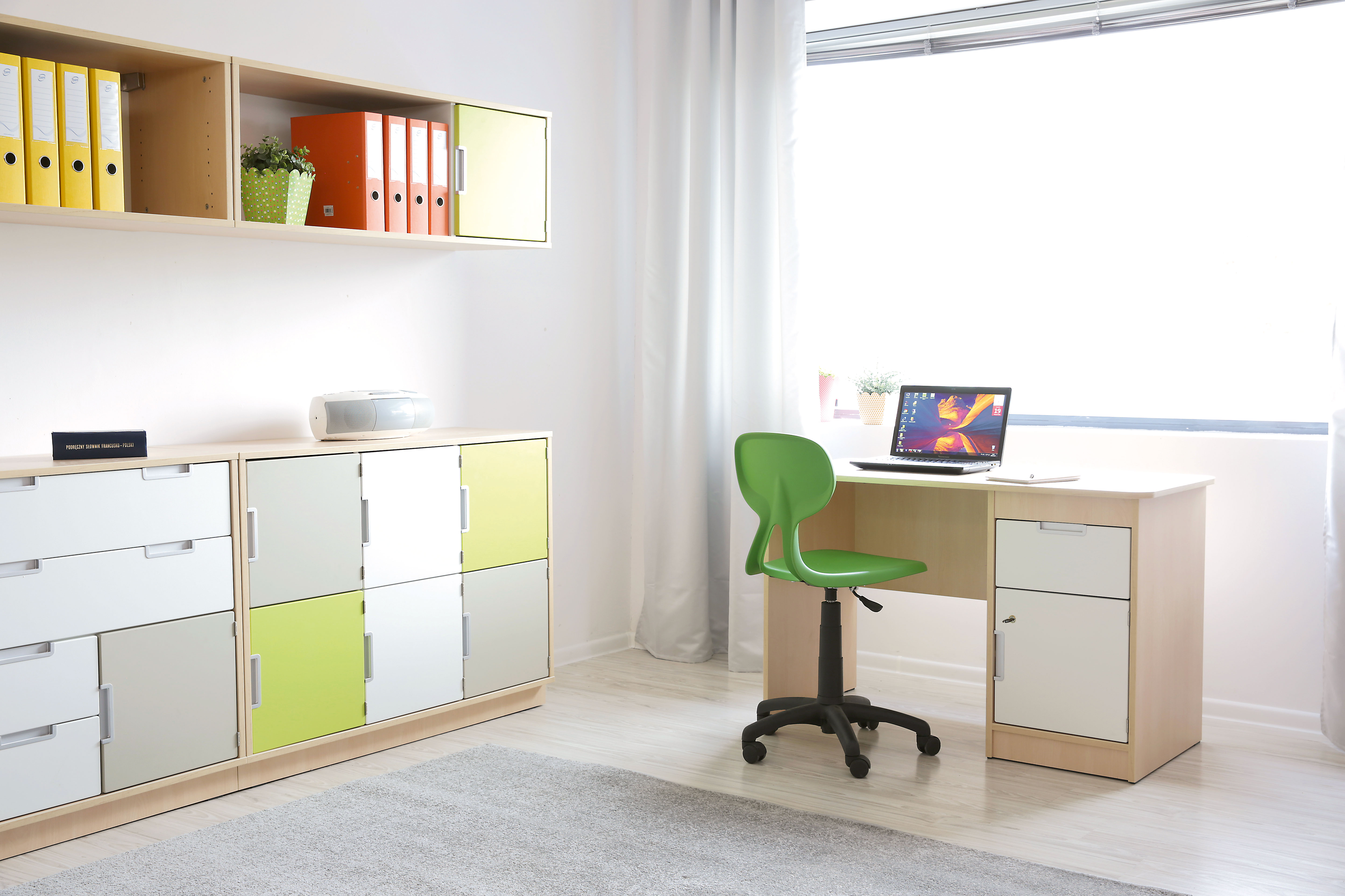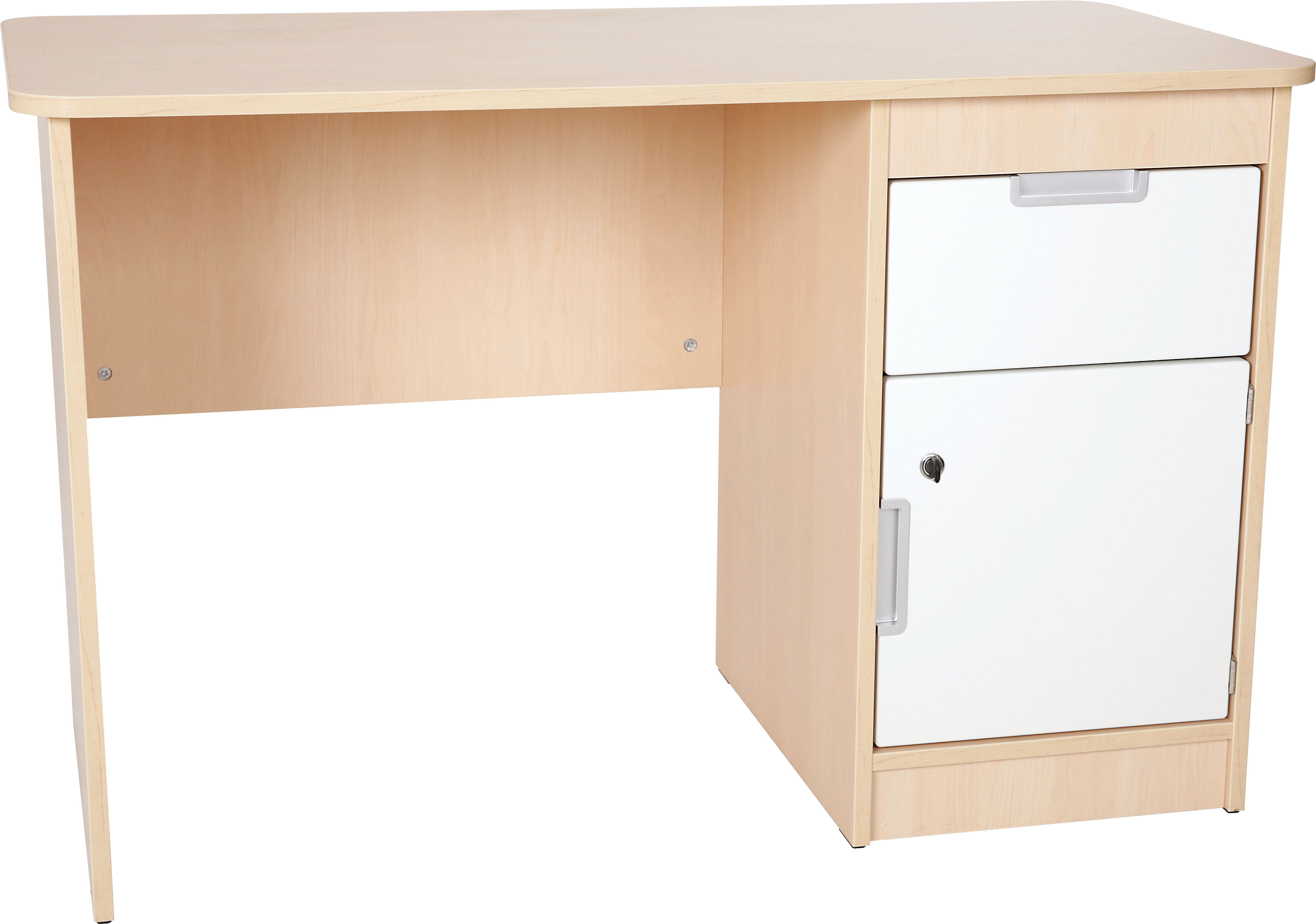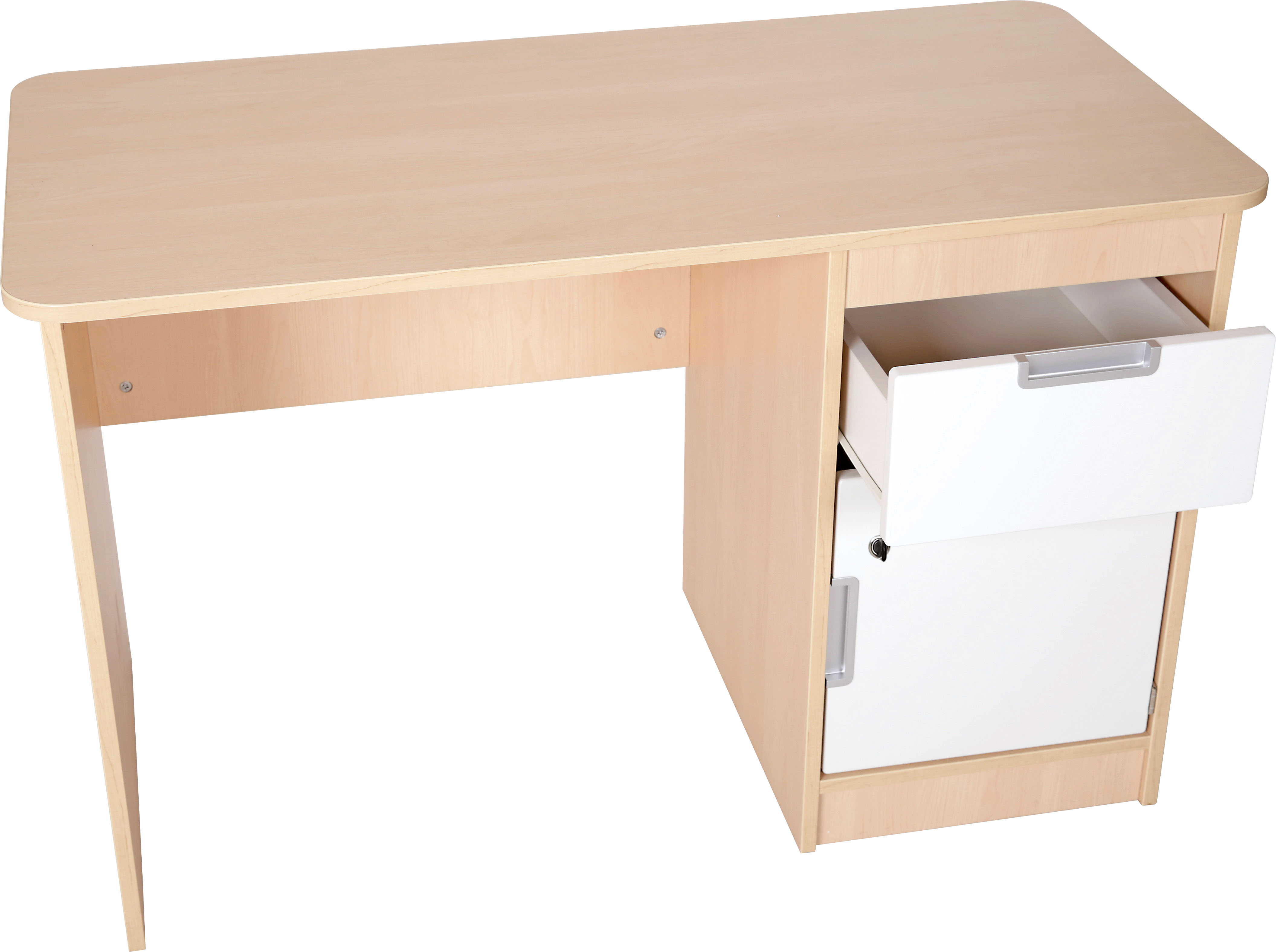 Flexi bureau voorzien van een afsluitbare kast en een lade.