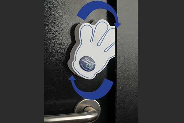 • vingers in horizontale houding: de deur wordt geblokkeerd en kan niet dichtvallen