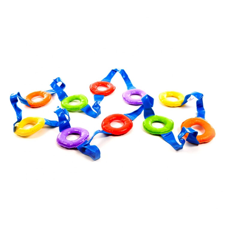 Met deze kleurrijke ringen gaan we met zijn allen op stap! 10 kleurrijke ringen gemaakt in stevig vinyl. Iedere ring is groot genoeg voor twee kinderhandjes. Ideaal voor wandelingen of evacuatie van 20 kinderen.