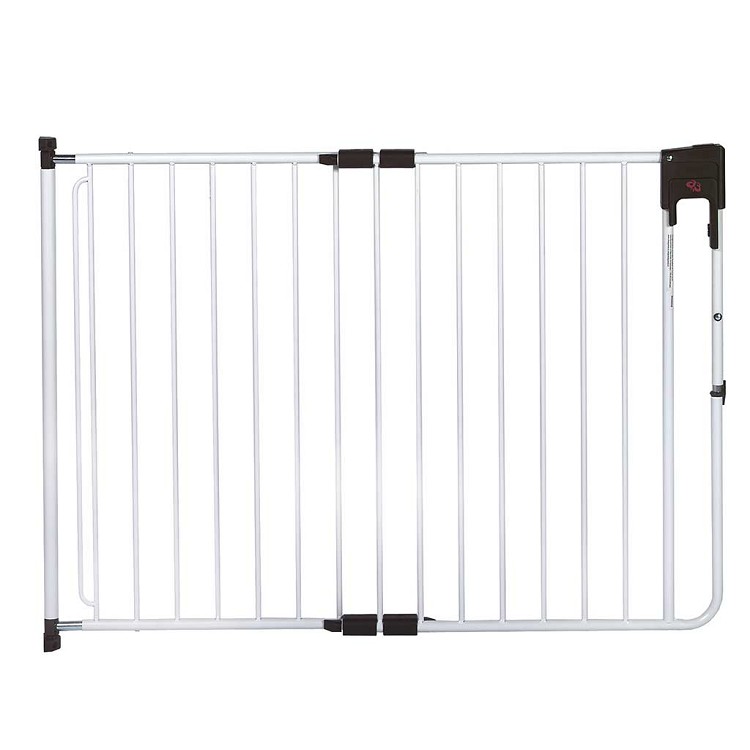 Het traphek SafetyDoor van A3 Baby & Kids is uitgevoerd in robuust metaal voorzien van een poedercoating in wit of titanium grijs. Het is voorzien van een sluiting waarbij 2 handelingen nodig zijn om het hek te kunnen openen, voor kleine kindjes dus onmogelijk. Voor ouders is het hek met 1 hand te openen, wel zo makkelijk met je kindje op de arm. Het traphek is verstelbaar van 75.5 cm tot 116 cm breed waardoor deze voor bijna alle deuropeningen en trappen geschikt is. De SafetyDoor voldoet uiteraard volledig aan de Europese norm NEN EN 1930:2011.