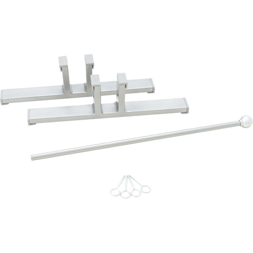 Elk scherm is aangevuld met 2 stands met afmetingen. 38 x 4 x 10,3 cm en 4 haken en stang voor het verbinden van schermen.