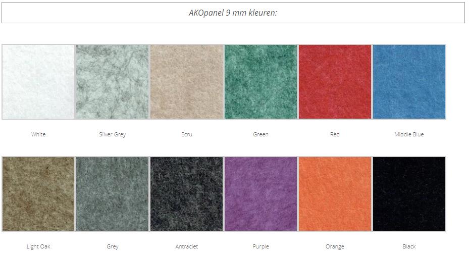 Onze 9 mm panelen zijn in 12 verschillende kleuren op voorraad.