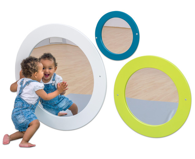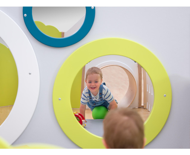 Het is daarom belangrijk om spiegels op te nemen als wandelementen in de wieg en de kleuterschool.
