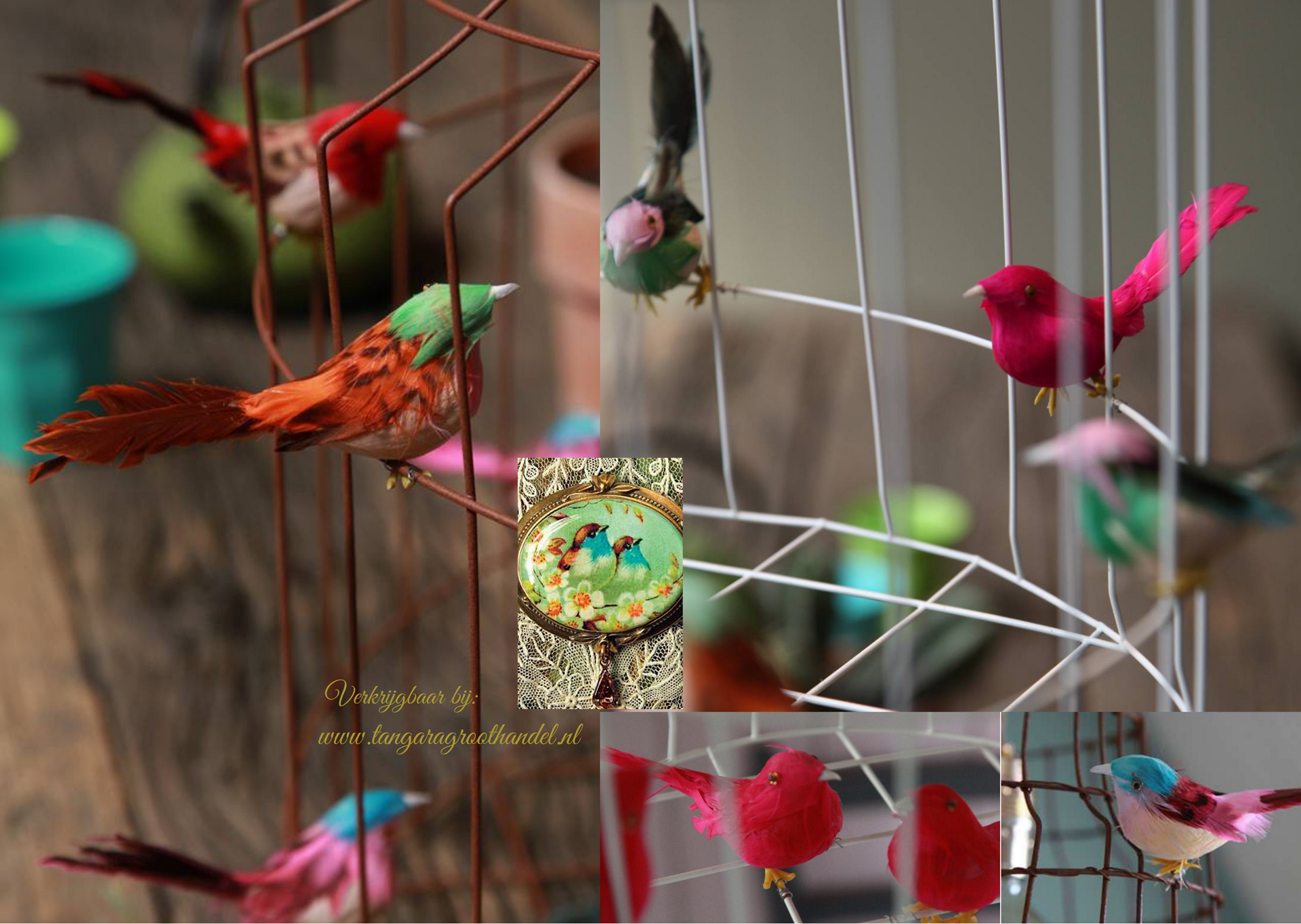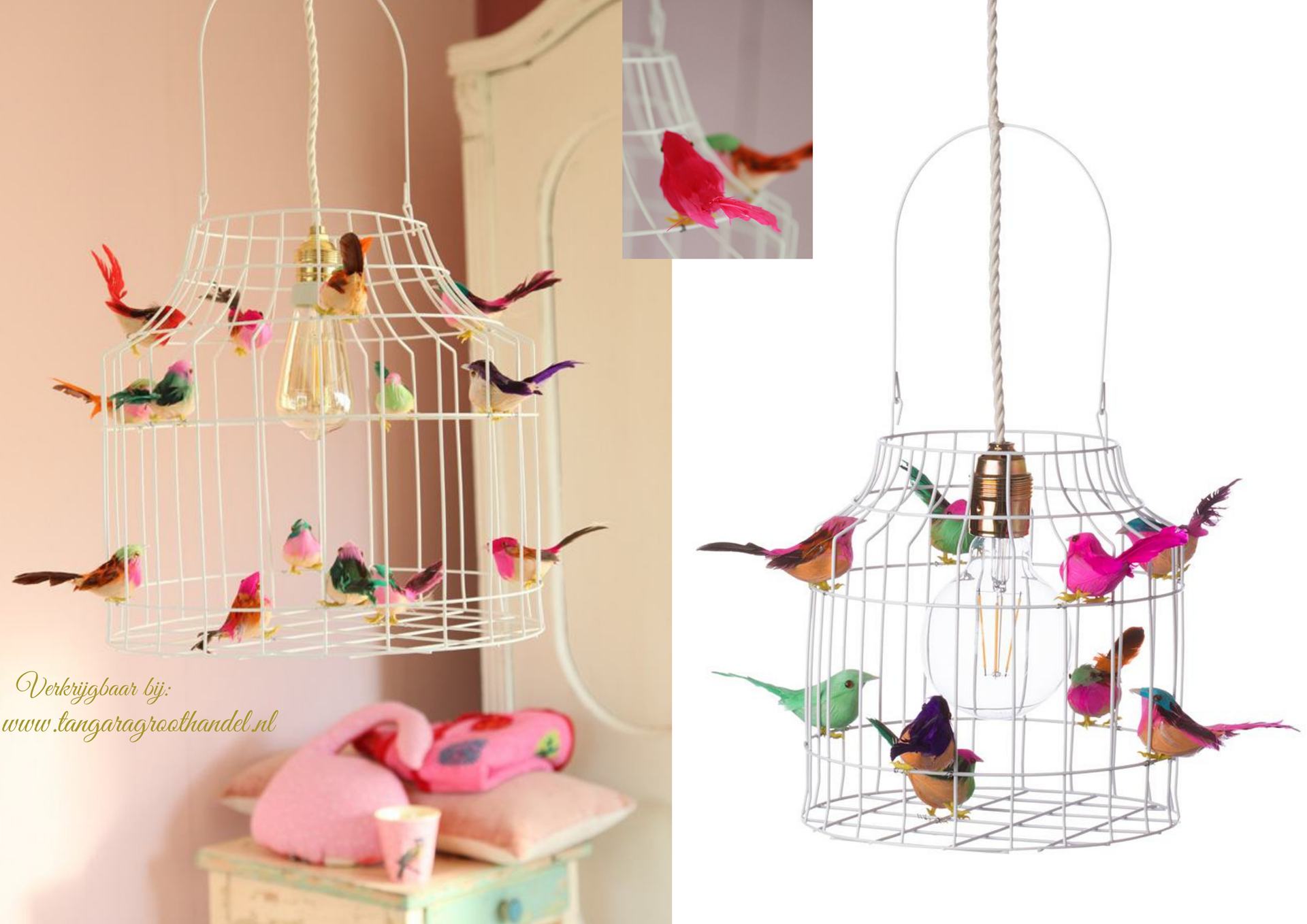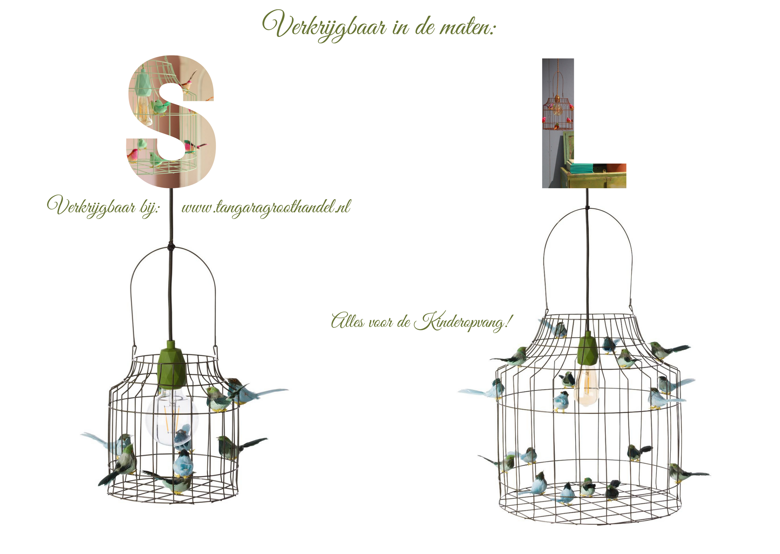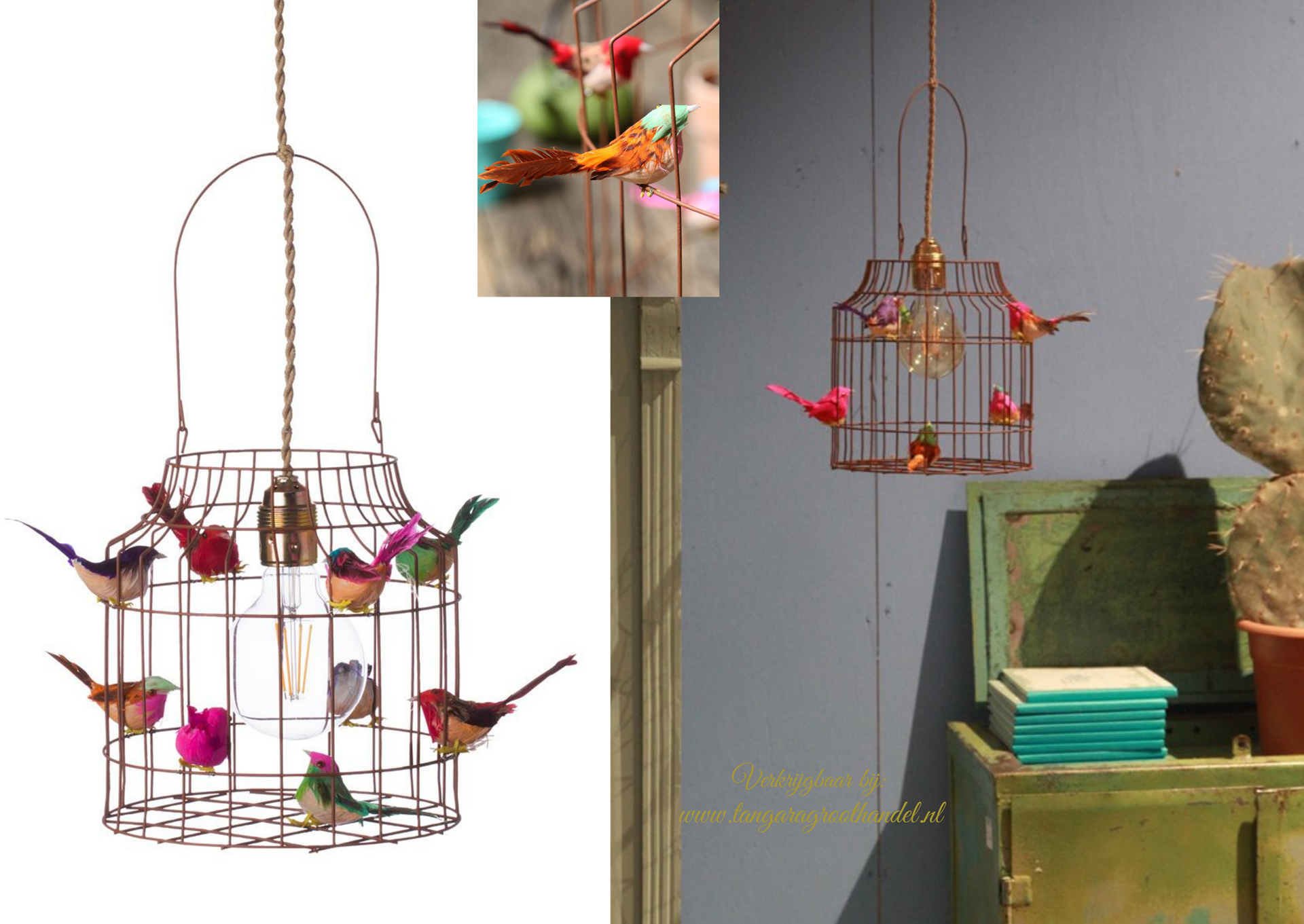 Dutch Dilight Hanglamp van legergroen ijzerdraad met vogeltjes. Net echt!