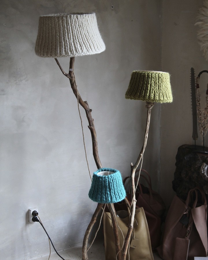 De gebreide lampenkap is grof gebreid van dikke Alpaca wol,