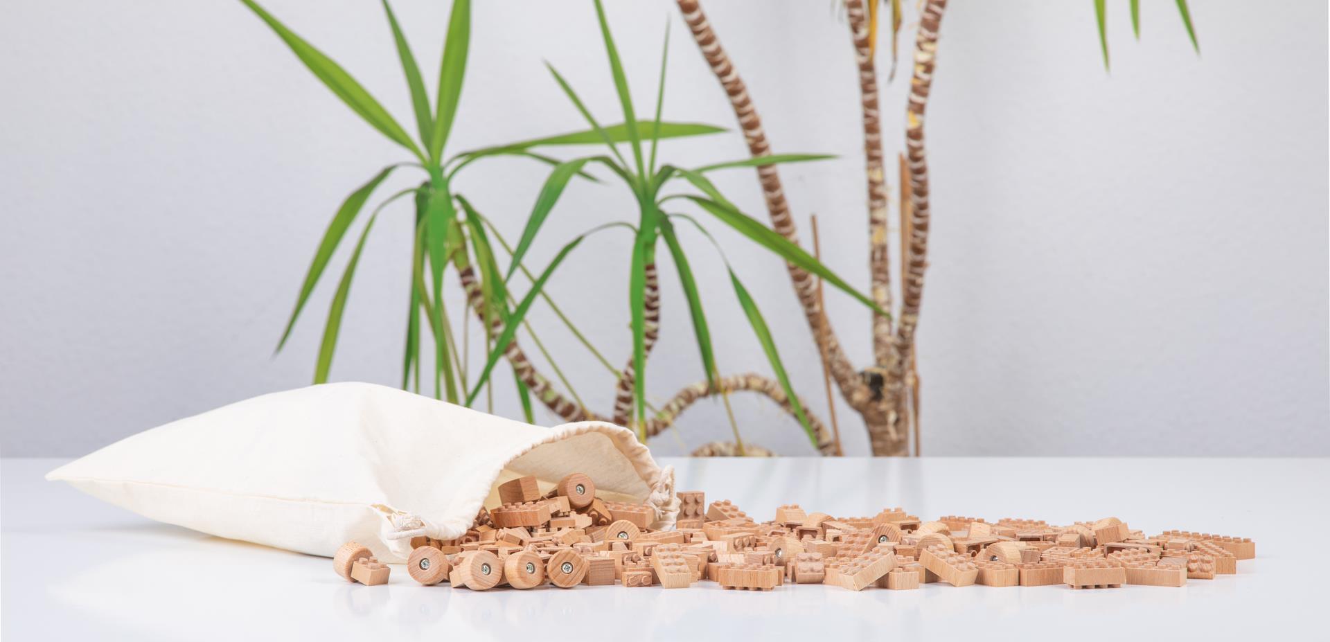 De FabBrix®-blokken zijn gemaakt van onbewerkt hout uit FSC-gecertificeerde bossen