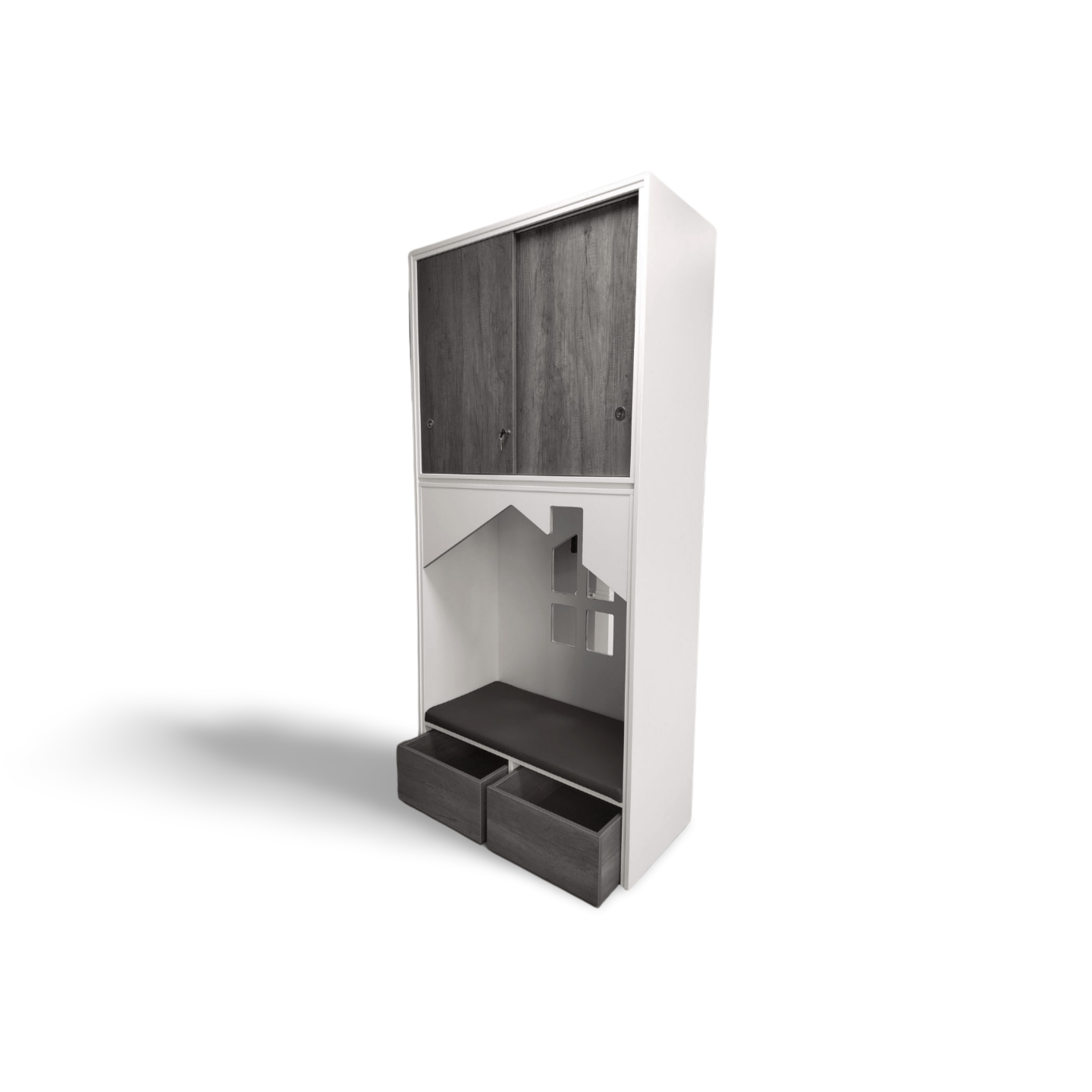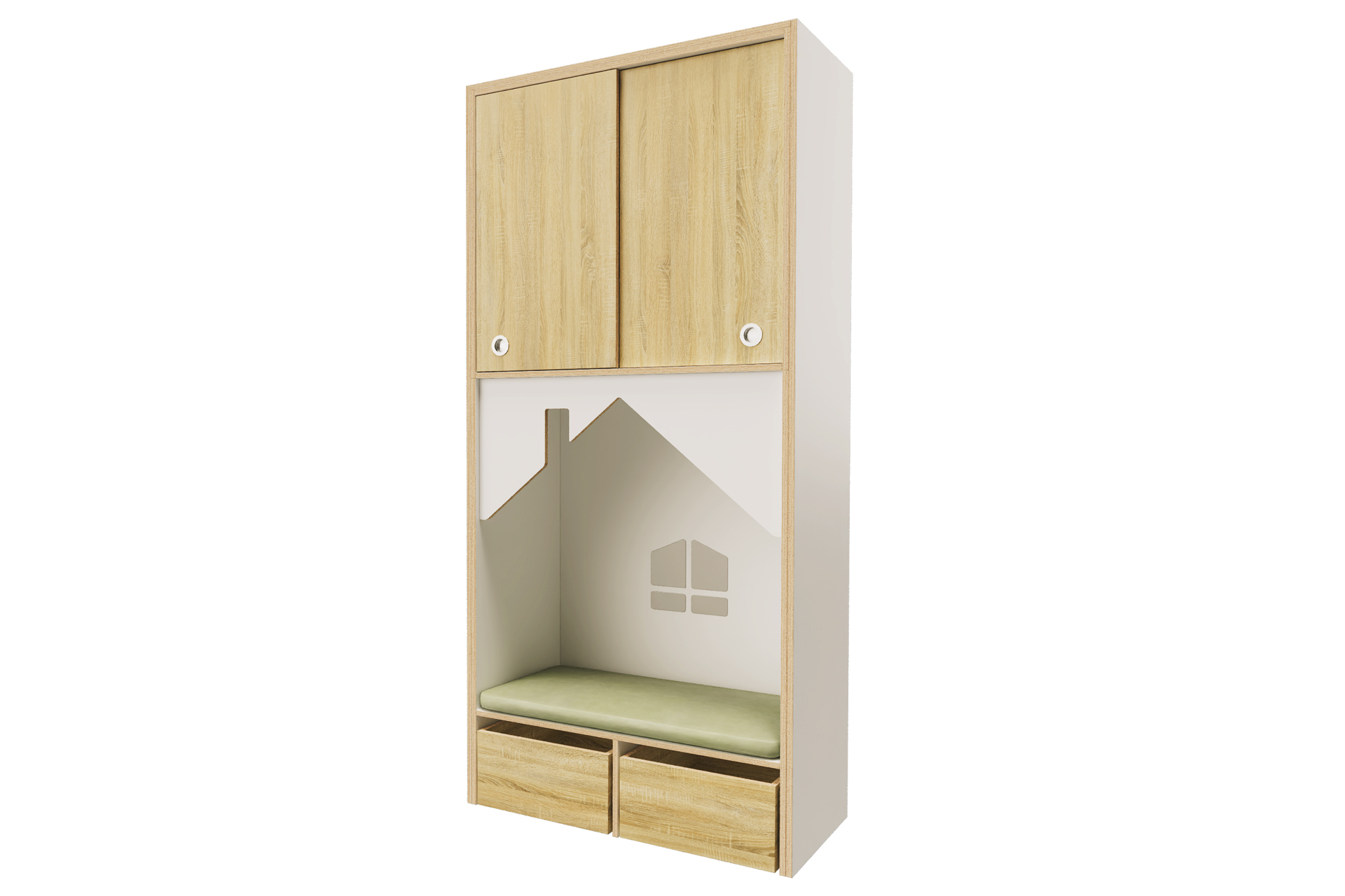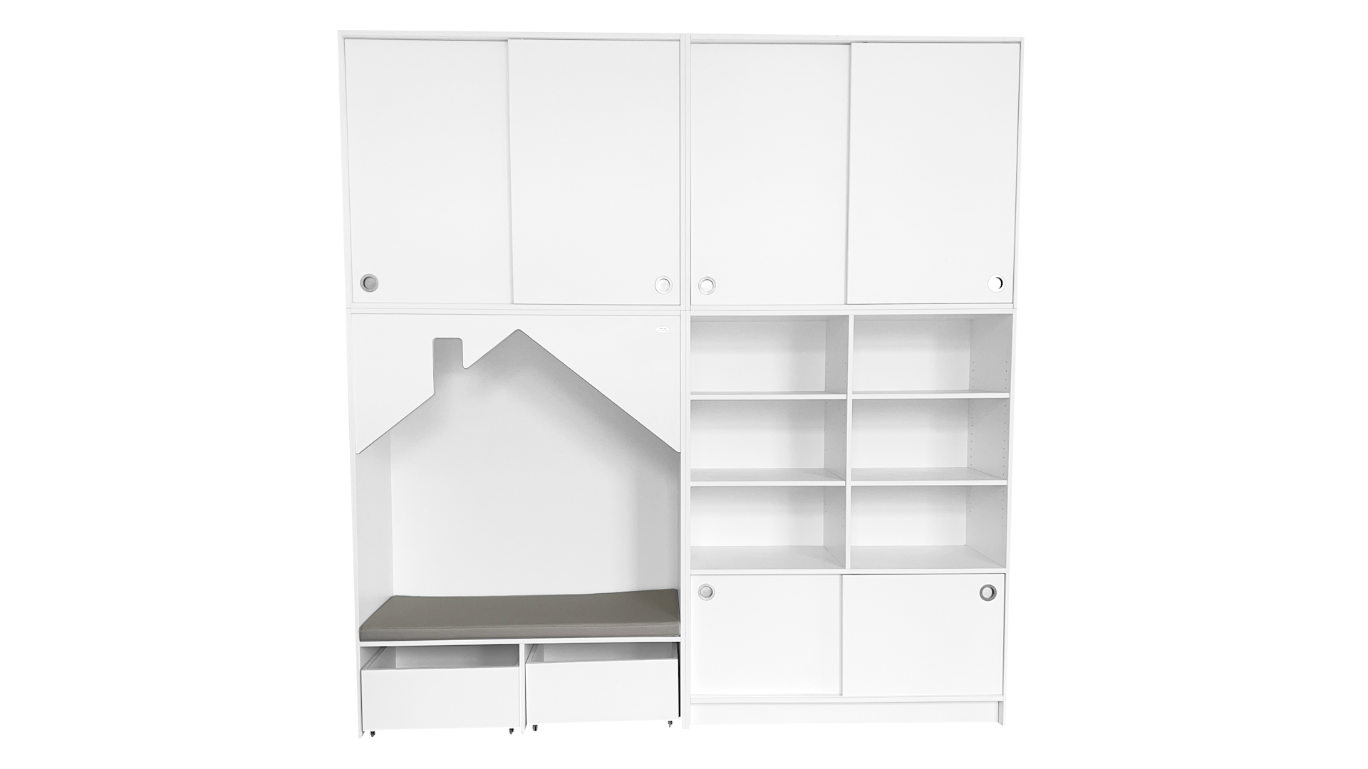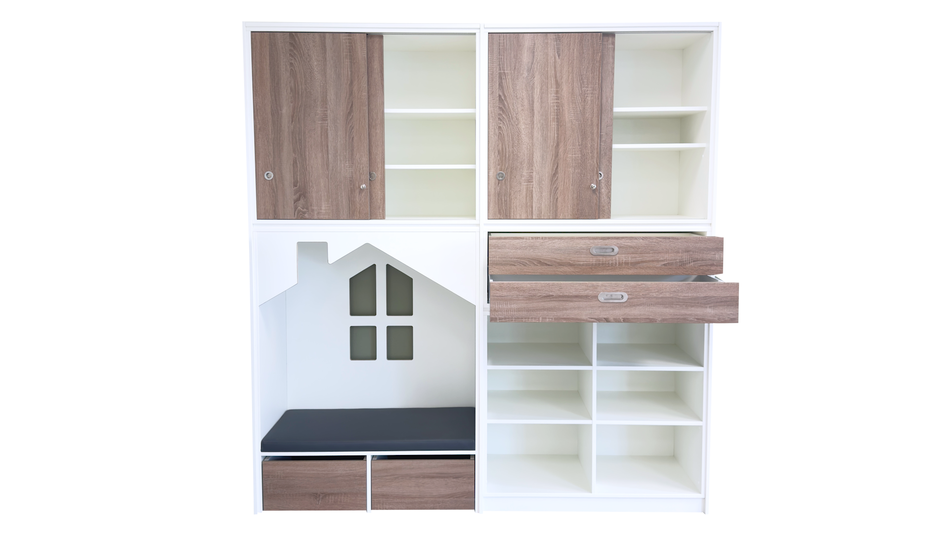 De schuifdeuren en rolbakken zijn leverbaar in een houtdecor naar keuze.Ā