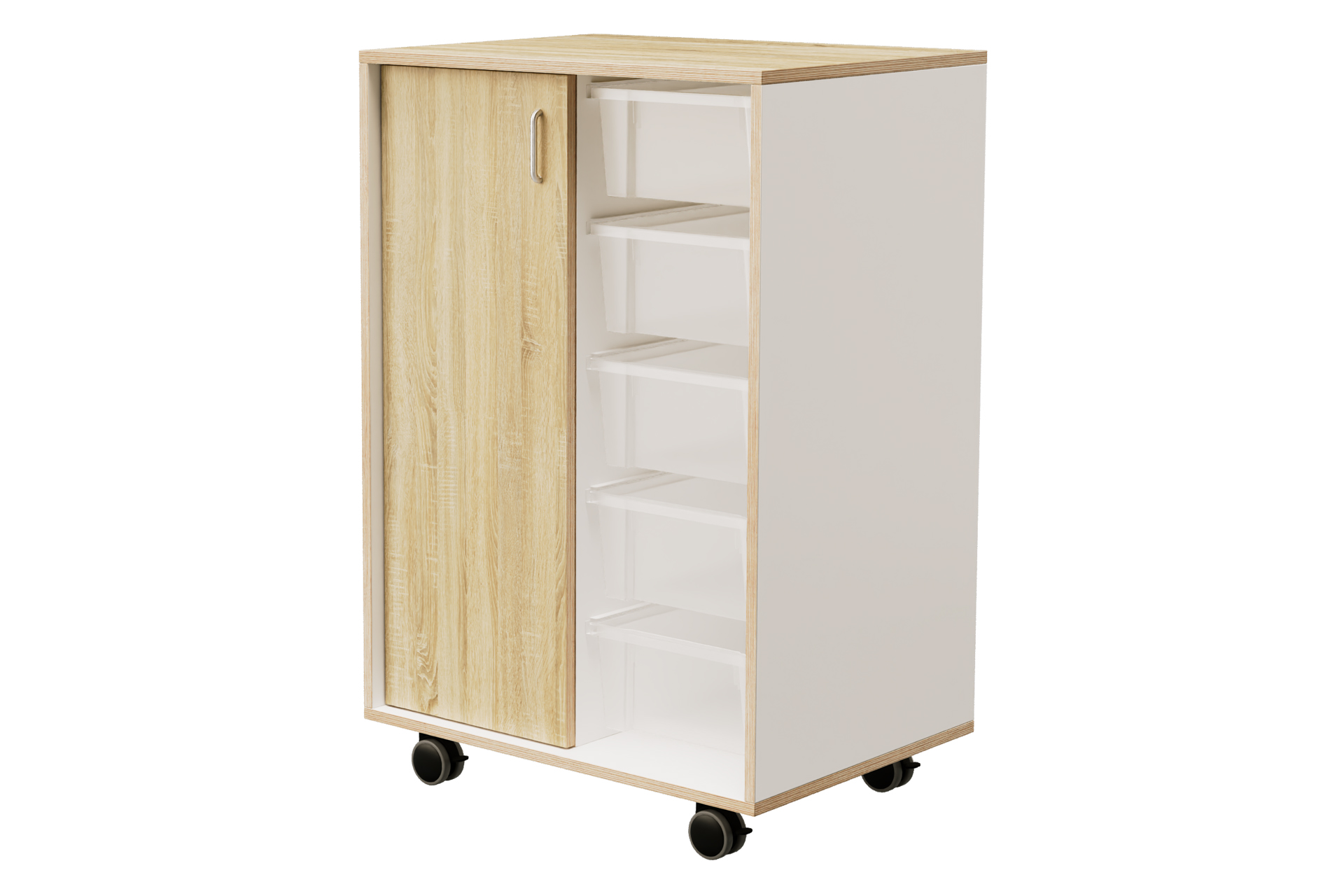 Het bovenblad en de draaideur zijn leverbaar in een houtdecor naar keuze.