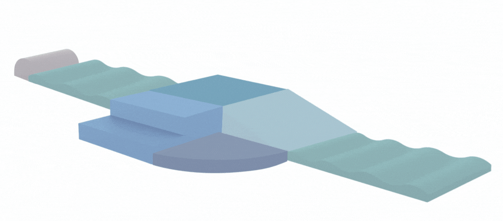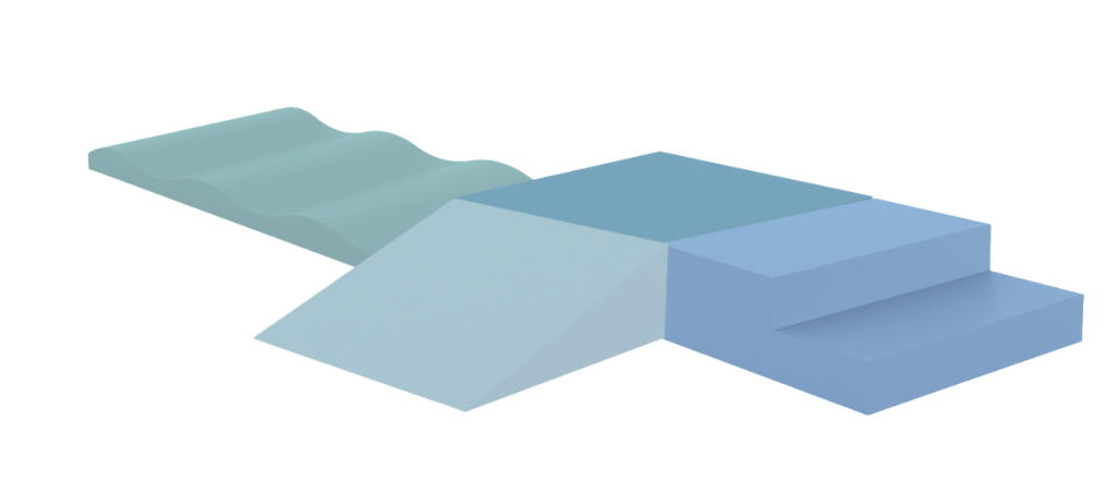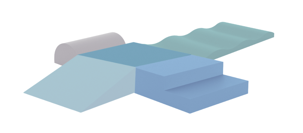 Het speelkussen is leverbaar met 4 korte of 2 brede golven.