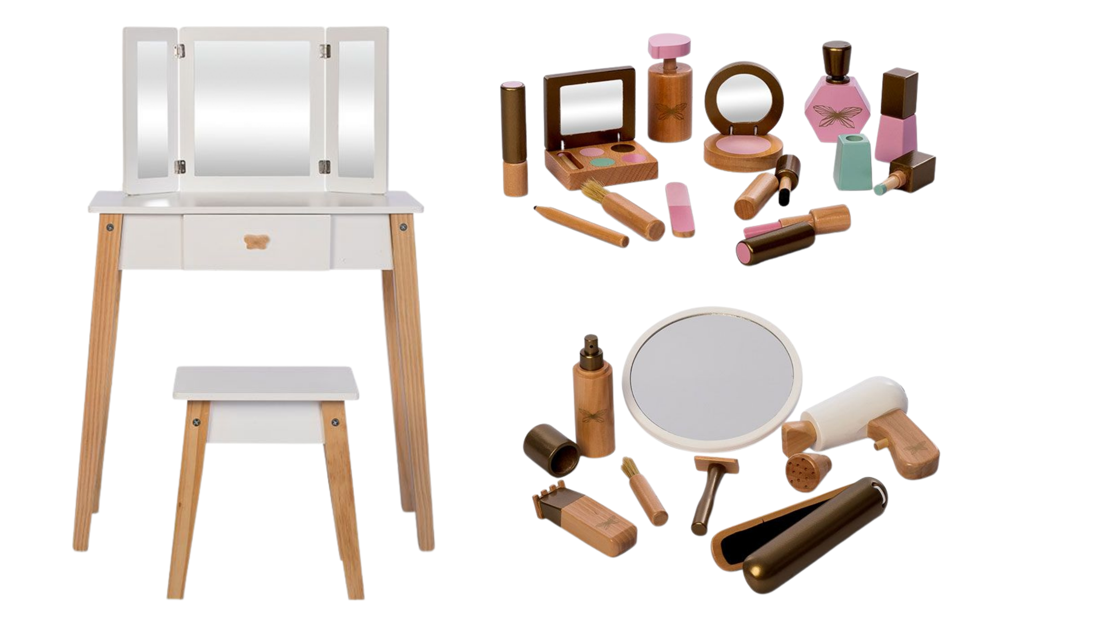 Houten make-up en kappers accessoires zijn los verkrijgbaar.