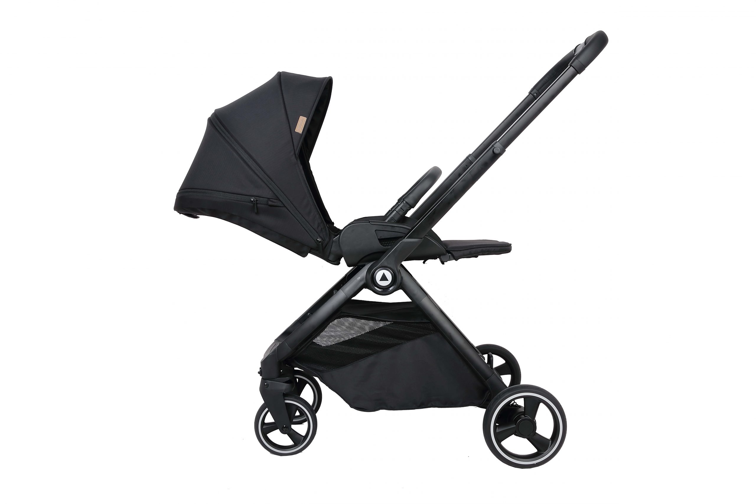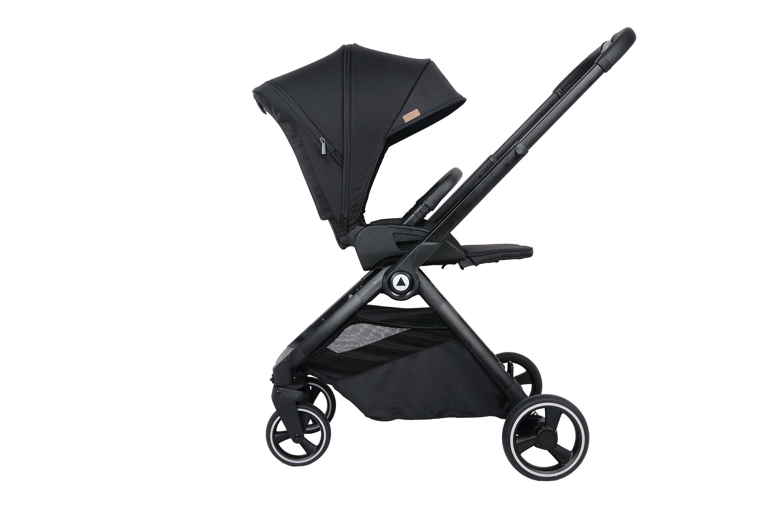 Deze wandelwagen DIAZ van Top Mark heeft een aluminium lichtgewicht zwart frame waardoor deze gemakkelijk te vervoeren is. Je kindje zit extra veilig met de 5-puntsgordel met body protectors. Daarnaast beschikt de DIAZ over een ruime boodschappenmand en een luxe kap inclusief; extra zonnekapje voor, groot gaasvenster met rits en kapverlenging mogelijk met rits . Je kan de rugleuning makkelijk met 1 hand verstellen in 3 posities van zit- naar slaapstand. Er zit vering op alle wielen, dat zorgt voor extra comfort voor je kindje. Ook de voetensteun is verstelbaar in 2 posities. De wagen is zeer compact opvouwbaar om veel ruimte te besparen bij het opbergen of transport. De zitting is omkeerbaar en heeft een rugleuning met extra ventilatiegaas en wordt geleverd met extra zitkussen. De Telescopische duwstang verstelbaar in 3 hoogtes en is net als de afneembare voorbeugel uitgevoerd in lederlook. De wandelwagen wordt geleverd met adapterset voor autostoel 0+ en regenhoes. Optioneel verkrijgbaar: reiswieg.