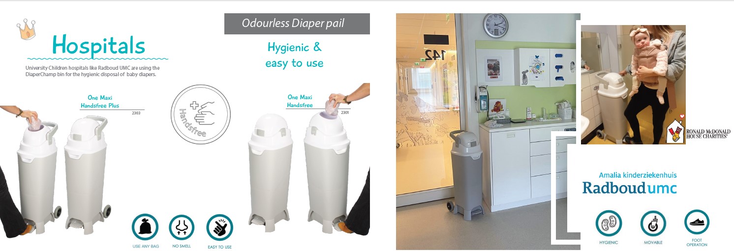 Houd je handen vrij met de Diaperchamp One Maxi Handsfree Plus Luieremmer. Deze ruime luieremmer open je eenvoudig door het voetpedaal in te drukken. Dit maakt de luieremmer hygiënisch en praktisch in gebruik. Want zodra jij je kleintje verschoont, heb je beide handen vrij om je kindje vast te houden. Ook deze luieremmer heeft de bekende DiaperChamp reukdichte technologie. Elke luier die je in de emmer gooit, wordt luchtdicht afgesloten. Bovendien heeft deze variant wielen, waardoor je de luieremmer eenvoudig verplaatst. Gebruik de luieremmer in huis, op een kinderdagverblijf of opvang. Waar je de DiaperChamp One Maxi Handsfree Plus Luieremmer ook gebruikt, hij komt altijd goed van pas.