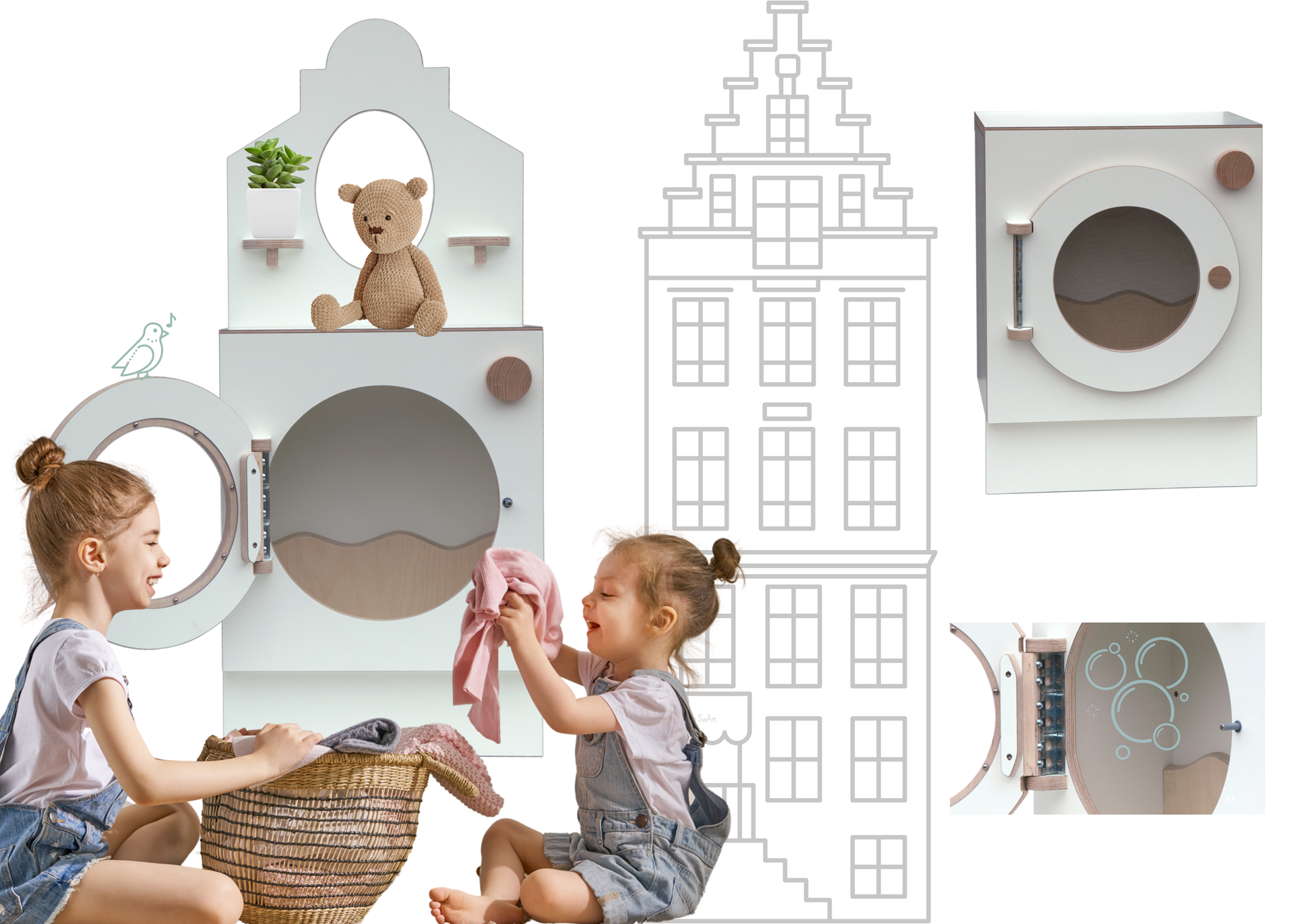 10 dicht Wasmachine met kindjes & Fornuis met kindjeOer Hollandse speelkeukentjes Tangara kinderopvang inrichting