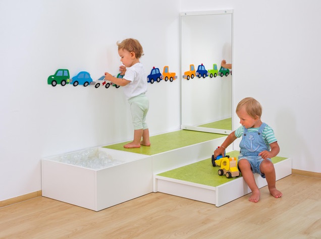 | Speelplatform/Podium set Jakob Avonturenlandschap met educatieve meerwaarde met duurzaam linoleum voor kinderen van 0-3 jaar inclusief muurspiegel Het ideale podiumlandschap voor kinderen van 0-3 jaar De Set Jakob werd samengesteld op basis van de behoeften van kinderen van 0-3 jaar. De kleine platforms kunnen eenvoudig op zichzelf worden geklommen en verlaten. De vriendelijke kleuren en de spiegel van veiligheidsglas veranderen elke kamer in een prachtige kamer om te knuffelen en te ontdekken. Veelzijdig Dankzij de interessante samenstelling van het voetstuk voelen de zeer kleine ontdekkingsreizigers zich heel goed. In de muurspiegel kijken ze met belangstelling naar hun eigen spiegelbeeld. In het kleine voetstuk kunt u een klein ballenbadje of een bad met handdoeken of gedroogde bonen enz maken. Alle zintuigen van de kinderen worden aangesproken en ze leren kleuren en vormen op een speelse manier kennen. De rechthoeken zijn voorzien van bijzonder onderhoudsvriendelijke linoleumvloeren. Vooral veilig - zonder gecompliceerd schroeven Omdat veiligheid erg belangrijk voor ons is, hebben alle platforms een anti-slip rand. Zonder beugels of schroeven zijn de voetstukken zo veilig en kunnen ze zonder extra moeite worden vervangen. Volgens jouw ideeën De sokkel Jakob wordt geleverd in de afgebeelde kleuren en kan variabel worden aangepast. Uiteraard kunt u deze set op elk gewenst moment aanvullen met de individuele sokkelelementen. belangrijk De voetstukelementen zijn exclusief ontwikkeld voor gebruik door baby- en kleuterkinderen (0-6 jaar). Daarom is het maximale laadvermogen 120 kg per element. materiaal - Wandspiegel: ideaal voor het bevorderen van zelfperceptie. - Linoleum coating: het materiaal is antistatisch, antibacterieel en heeft een laag geluidsniveau. Het kan gemakkelijk worden afgeveegd en desinfecteren naar believen. Deze topping is gemaakt van natuurlijke, hernieuwbare bronnen. levering 1x kleine sokkel - rechthoek, decor wit, 24 cm, linoleumkalk, (hxbxd) 24x100x50 cm 1x kleine sokkel - rechthoek, decor wit, 12 cm, linoleumkalk, (hxbxd) 12x100x50 cm 1x kleine sokkel - vierkant om te vullen, decor wit, 24 cm, (hxbxd) 24x50x50 cm 1x wandspiegel voor kleine sokkel, decor wit, (hxbxd) 100x50x3,1 cm. |