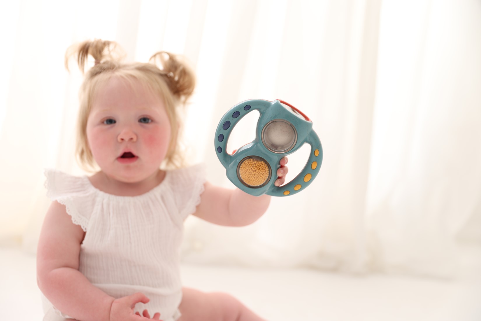 De rammelaar is makkelijk vast te houden en is geschikt voor de mond van je baby.