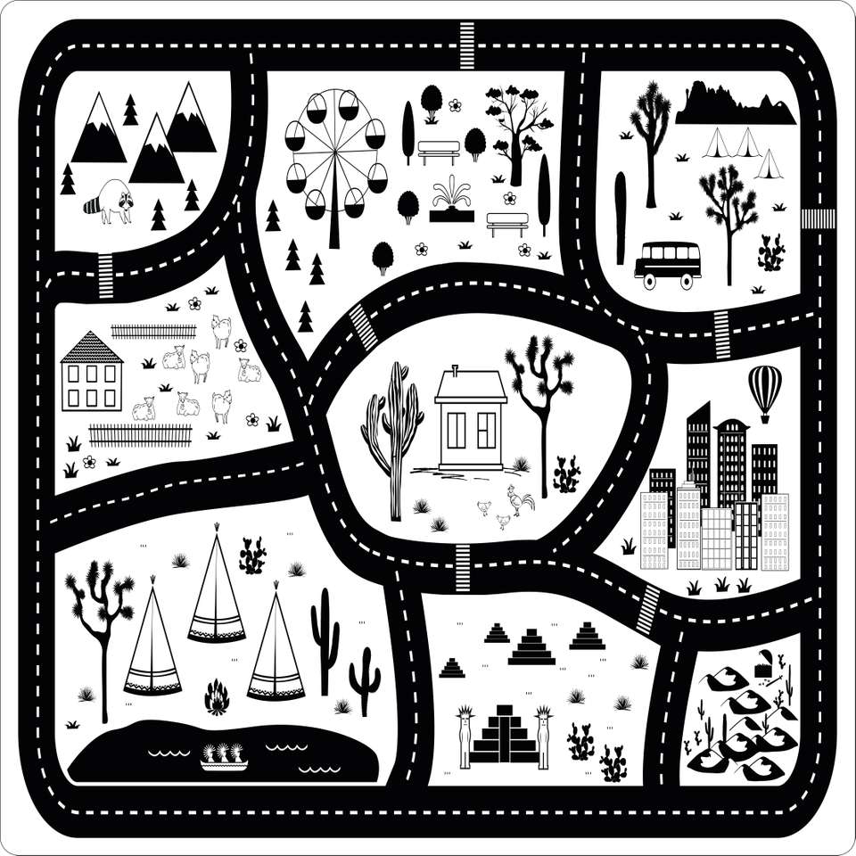 Vloerkleed Speelkleed Stad Zwart/Wit