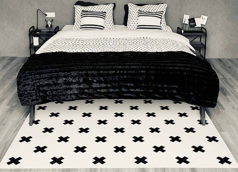 Vloerkleed vinyl | Kriss Kross, Wit met zwarte kruizen