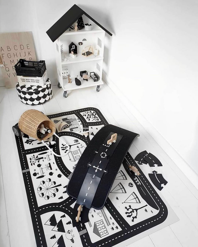 Dit vinyl vloerkleed in vrolijke print is ook geschikt als speelkleed.