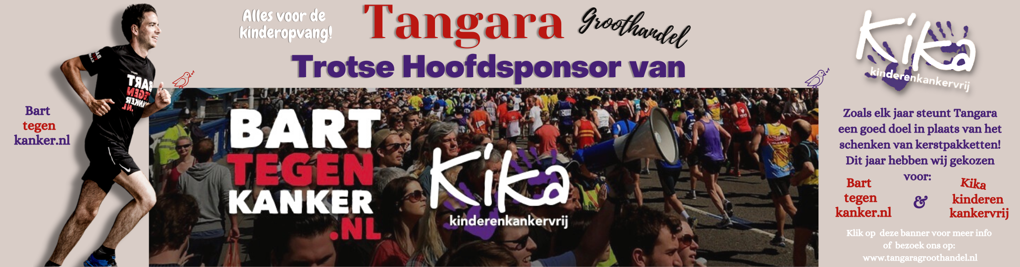 Ieder jaar komen vele scholen, verenigingen, bedrijven en particulieren uit heel Nederland in actie voor ons. Wij vinden het daarom geweldig dat Tangara Groothandel de CliniClowns steunt..