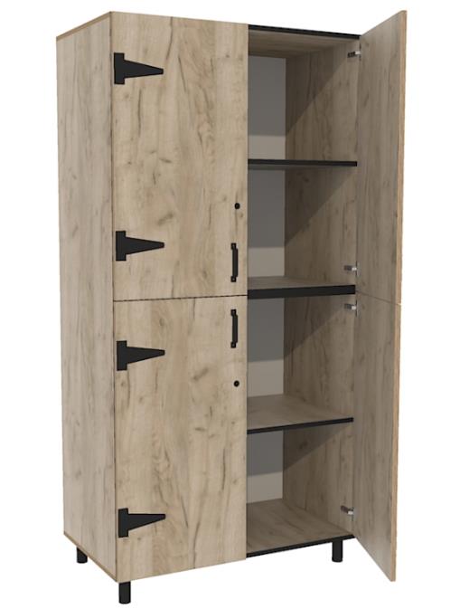 Leidsterkast met boven en onder deuren, voorzien van sloten.