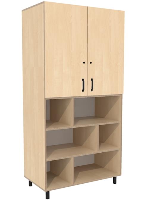 achter de deuren zijn brede legplanken aanwezig.