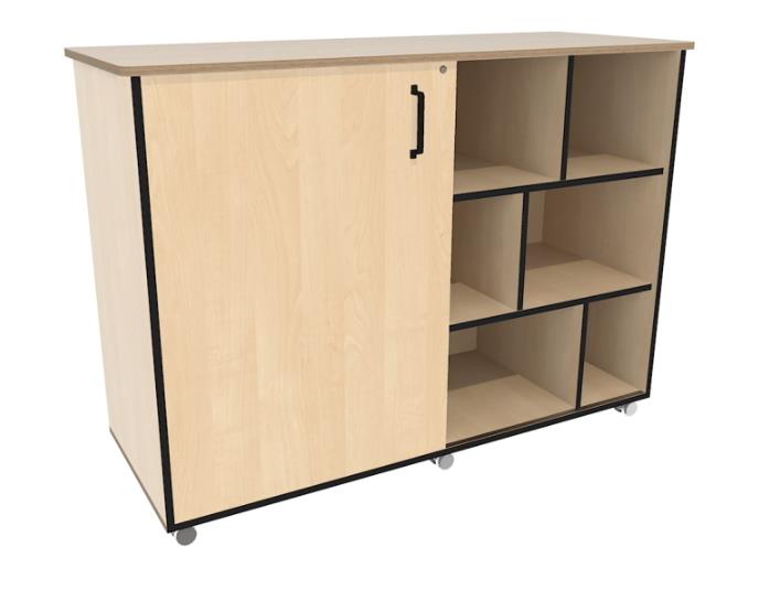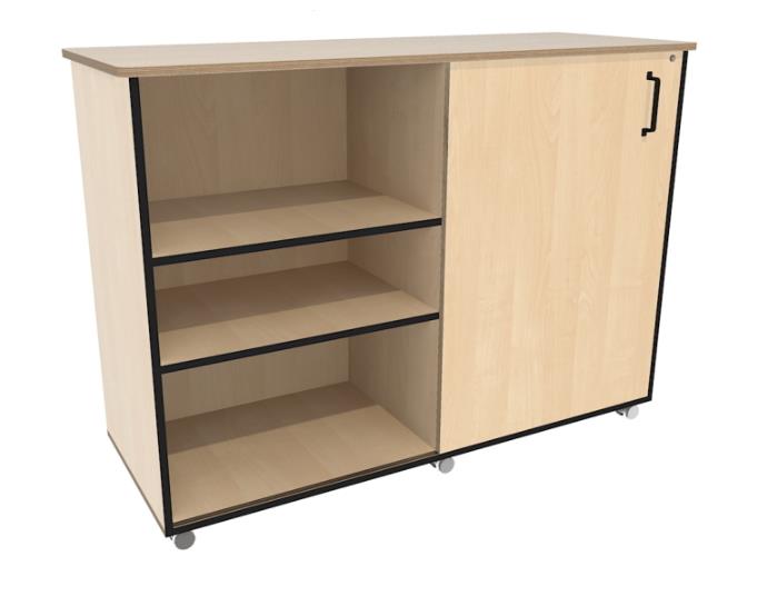 Lage verrijdbare kast met 1 schuifdeur voorzien van een slot.