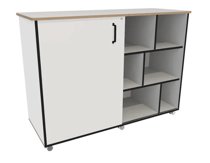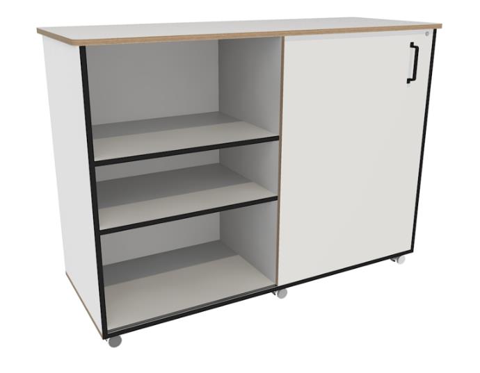 Lage verrijdbare kast met 1 schuifdeur voorzien van een slot.