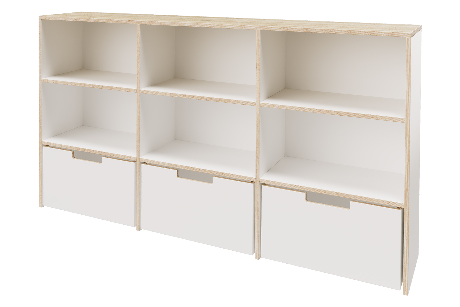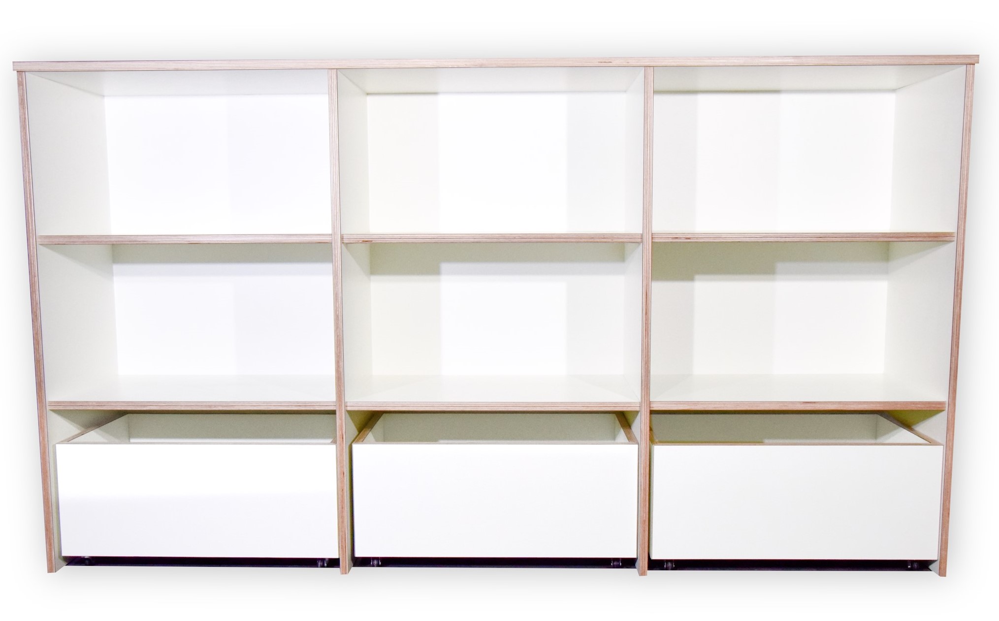 Deze kast is opgebouwd uit 18 mm berken multiplex met HPL toplaag in de kleur wit.