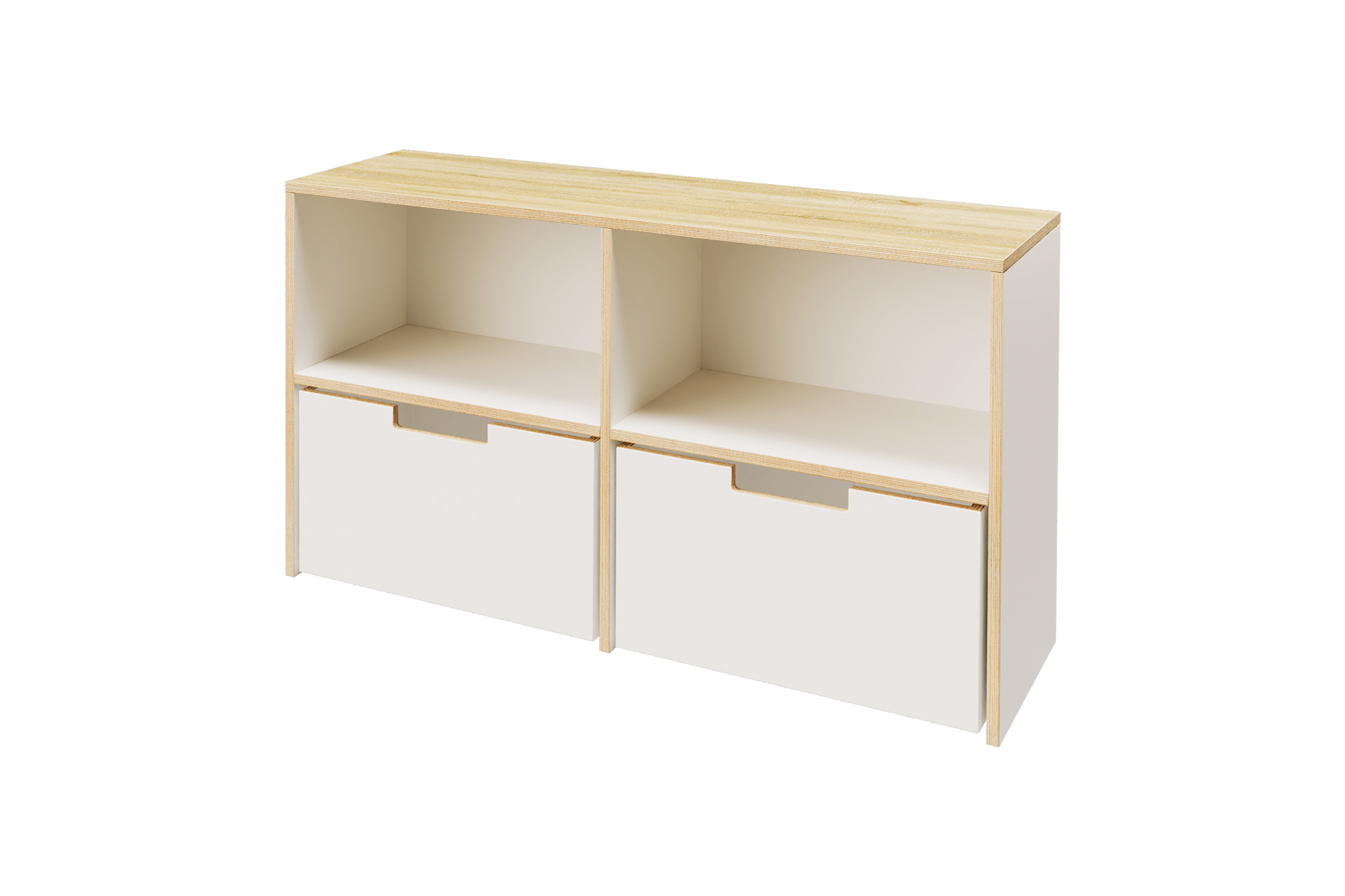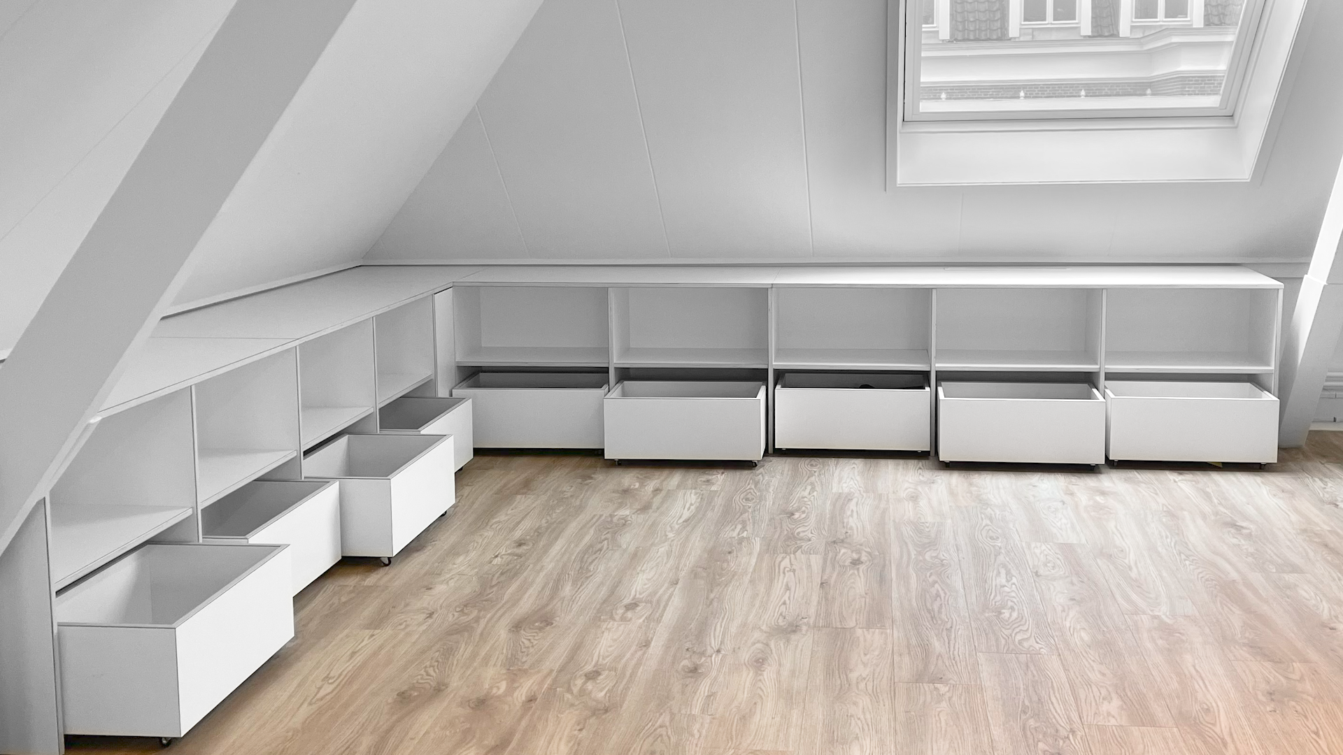 Deze kast is opgebouwd uit 18 mm berken multiplex met HPL toplaag in de kleur wit.