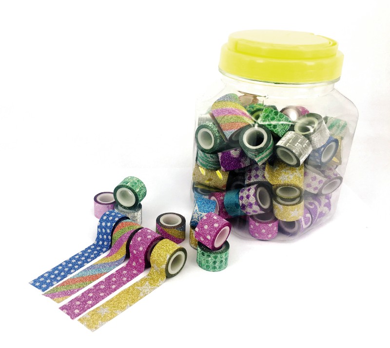 100 stuks glittertape in een pot met deksel