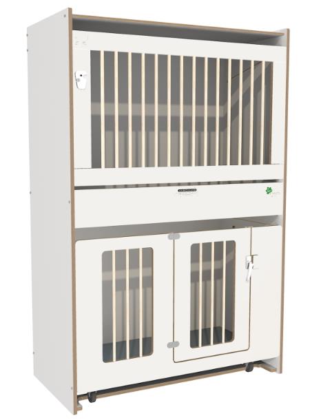 Evacuatiebedje met draaihekje en spijlen.