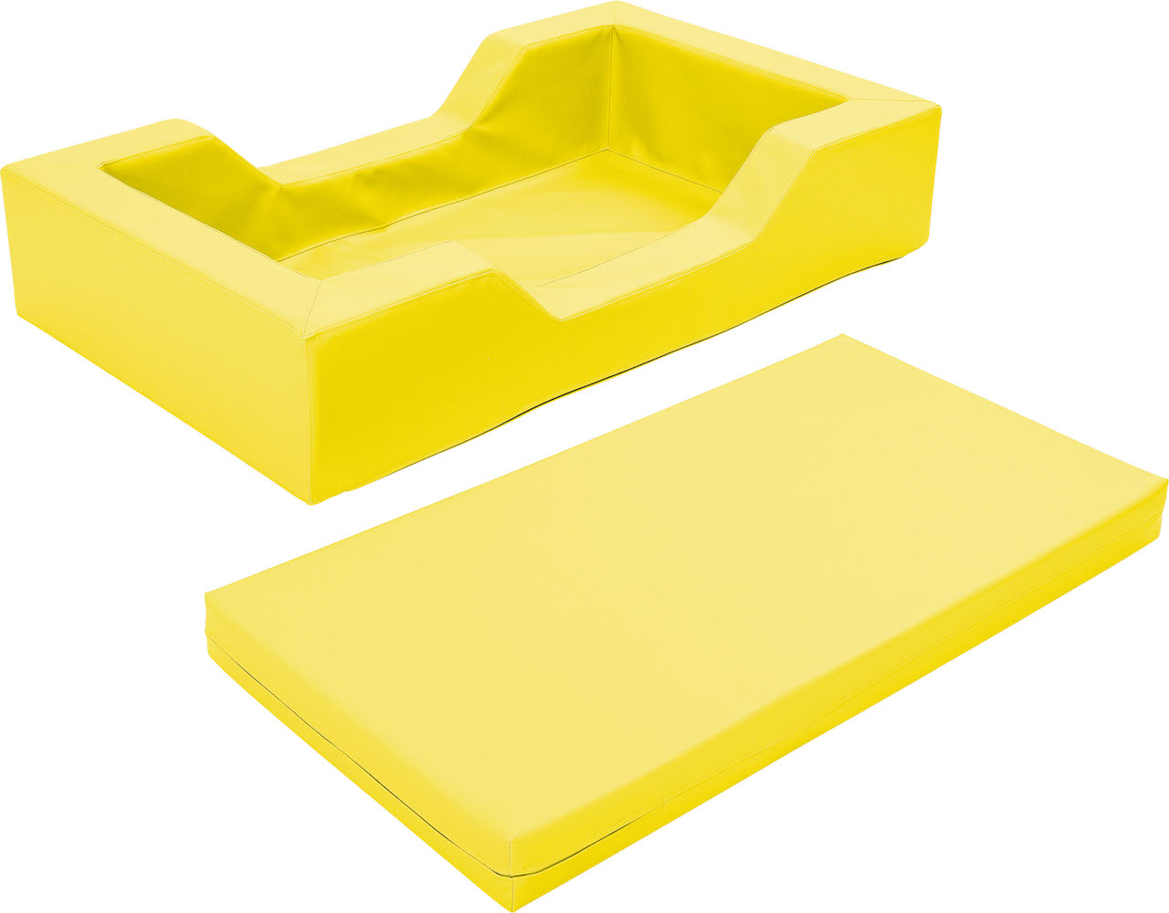 Kleurrijk kinderbed van hardschuim bedekt met duurzaam PVC-materiaal, gemakkelijk schoon te maken en bestand tegen vocht.