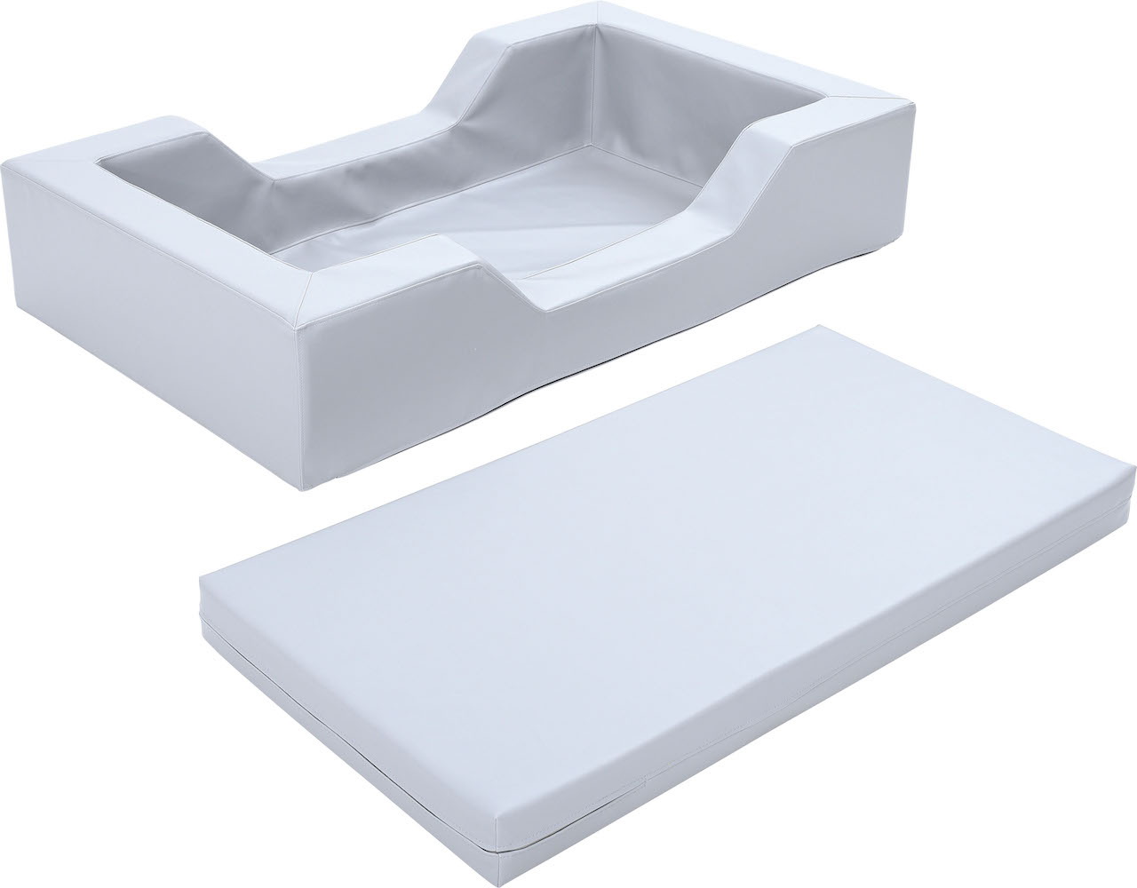 Kleurrijk kinderbed van hardschuim bedekt met duurzaam PVC-materiaal, gemakkelijk schoon te maken en bestand tegen vocht.