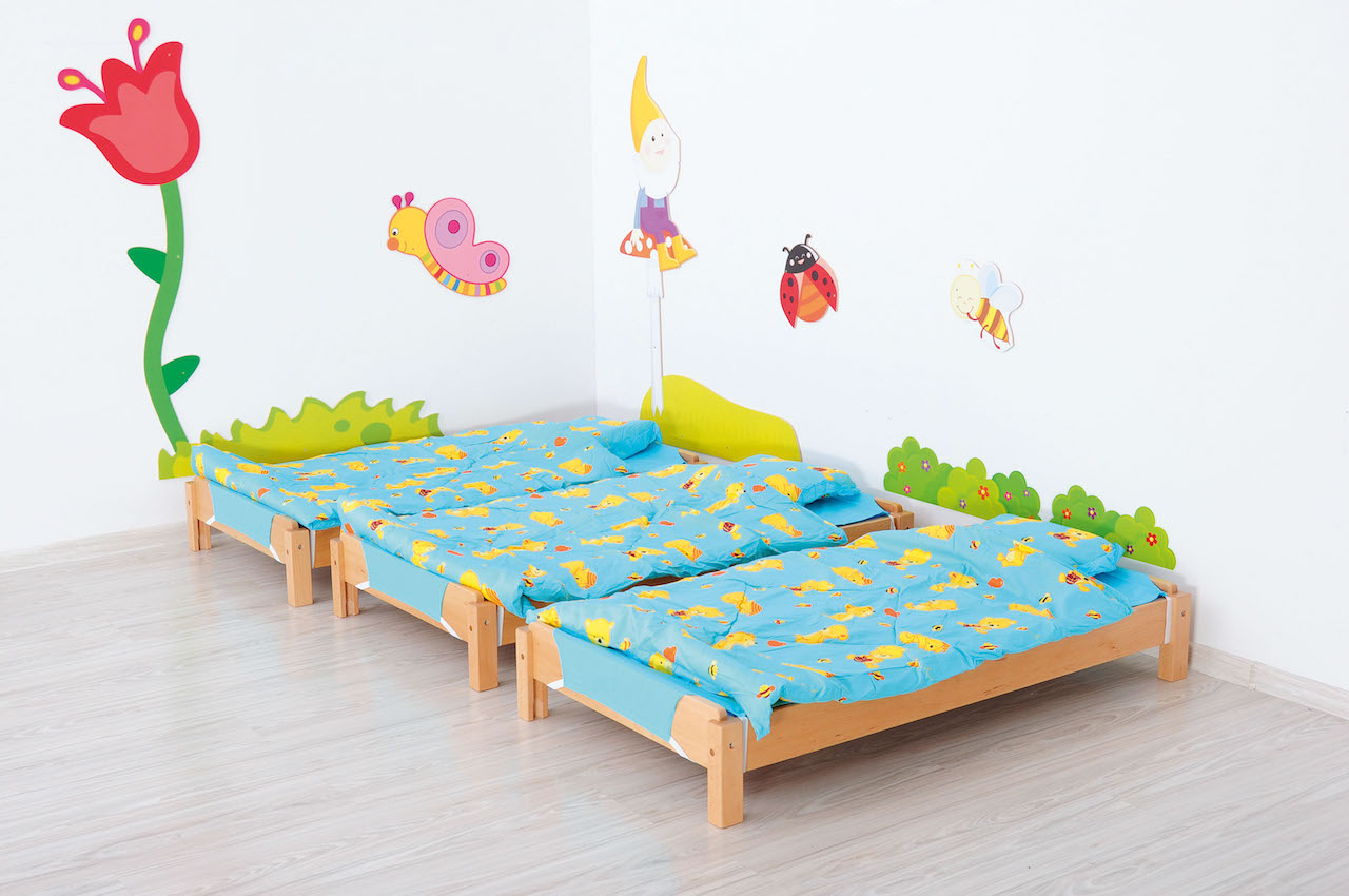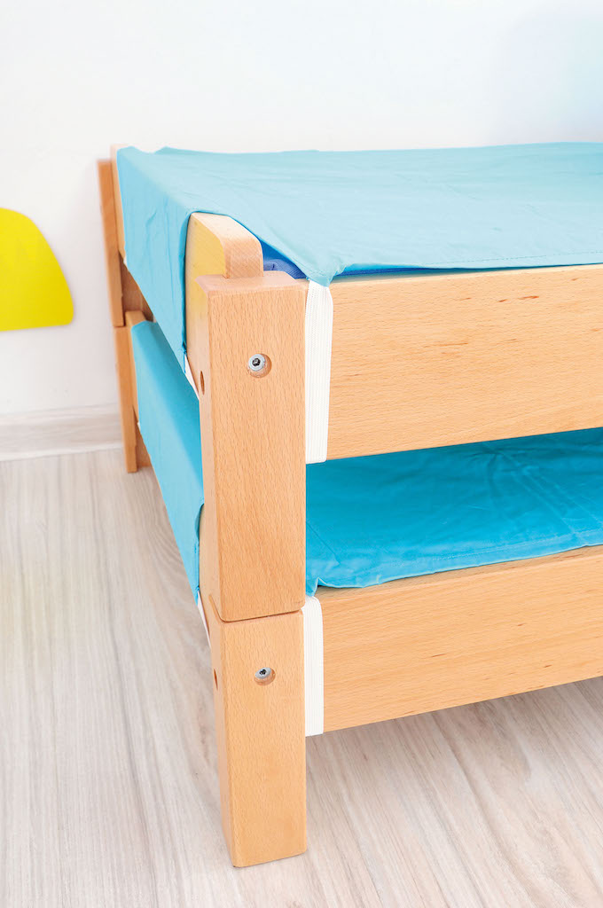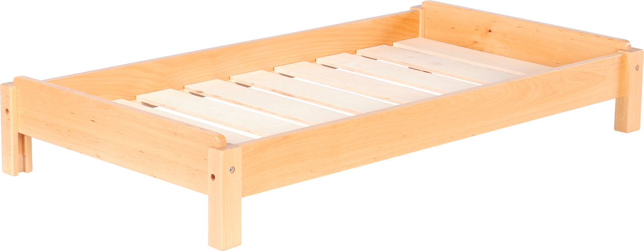 Degelijk kinderbed met mogelijkheid tot stapelen (max.10 stuks).