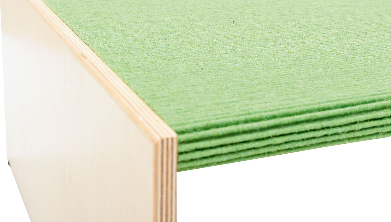 Het platform is gemaakt van multiplex met een dikte van 14 mm en bedekt met duurzame tapijt.