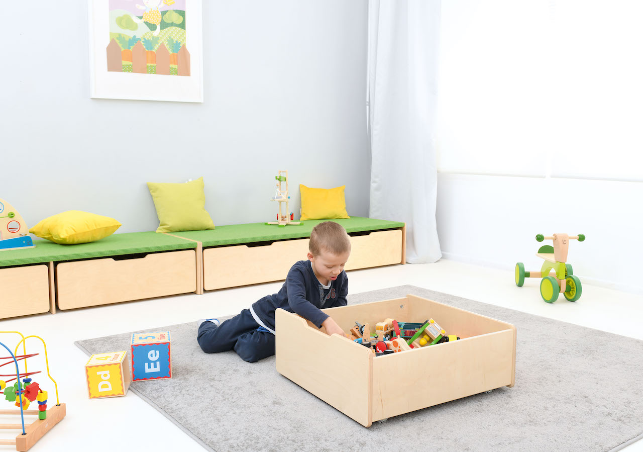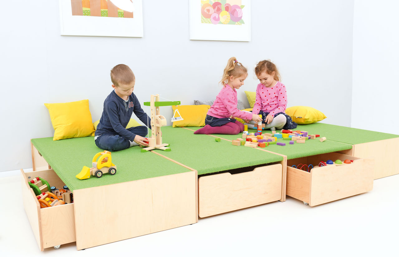 Een platform met nissen voor grote en ruime uittrekbare lades (niet inbegrepen) is een geweldig idee om de opslagruimte te vergroten en ruimte in uw groep te besparen.