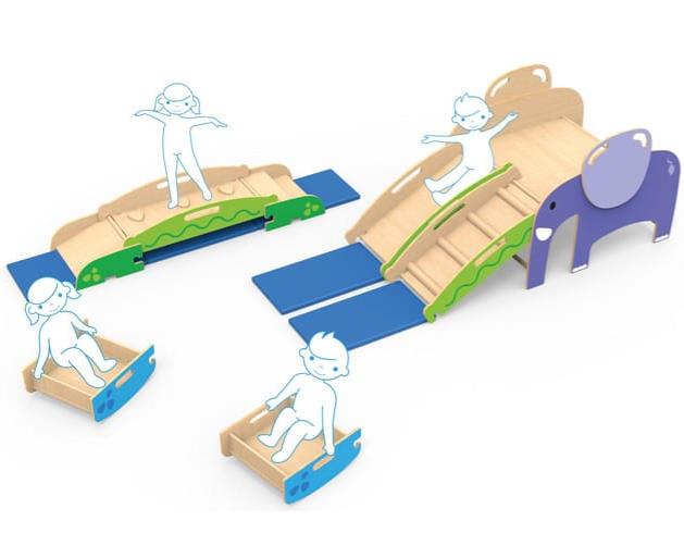 Daarbij stimuleert hij speelse motoriek, coördinatie en evenwicht.