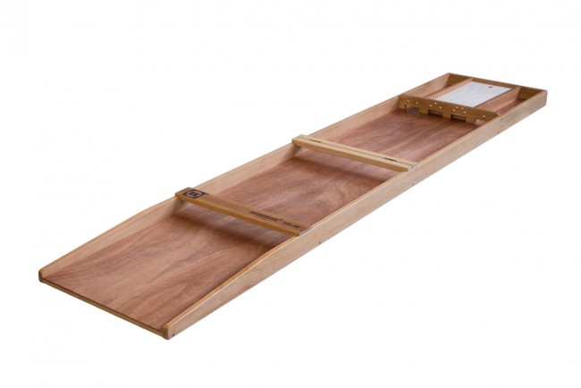 Originele handvervaardigde sjoelbak van zware kwaliteit. Deze opklapbare sjoelbak bestaat uit 2 delen welk door scharnieren verbonden zijn. Door de fijn-afstemming van deze scharnieren sluiten de delen zo goed als naadloos op elkaar aan, zodat hier tijdens het sjoelen geen hinder van ondervonden wordt. Zo is deze klapsjoelbak van wedstrijdformaat eenvoudig dubbel te klappen en op te bergen. De HS40 is een sjoelbak vervaardigd uit duurzame houtsoorten zoals Abura in combinatie met Meranti. De verbindingen zijn geschroefd, waardoor stabiliteit en duurzaamheid gewaarborgd zijn. Puntaanduiding boven de poortjes middels messing nagels. Niet geschikt voor professioneel gebruik. |